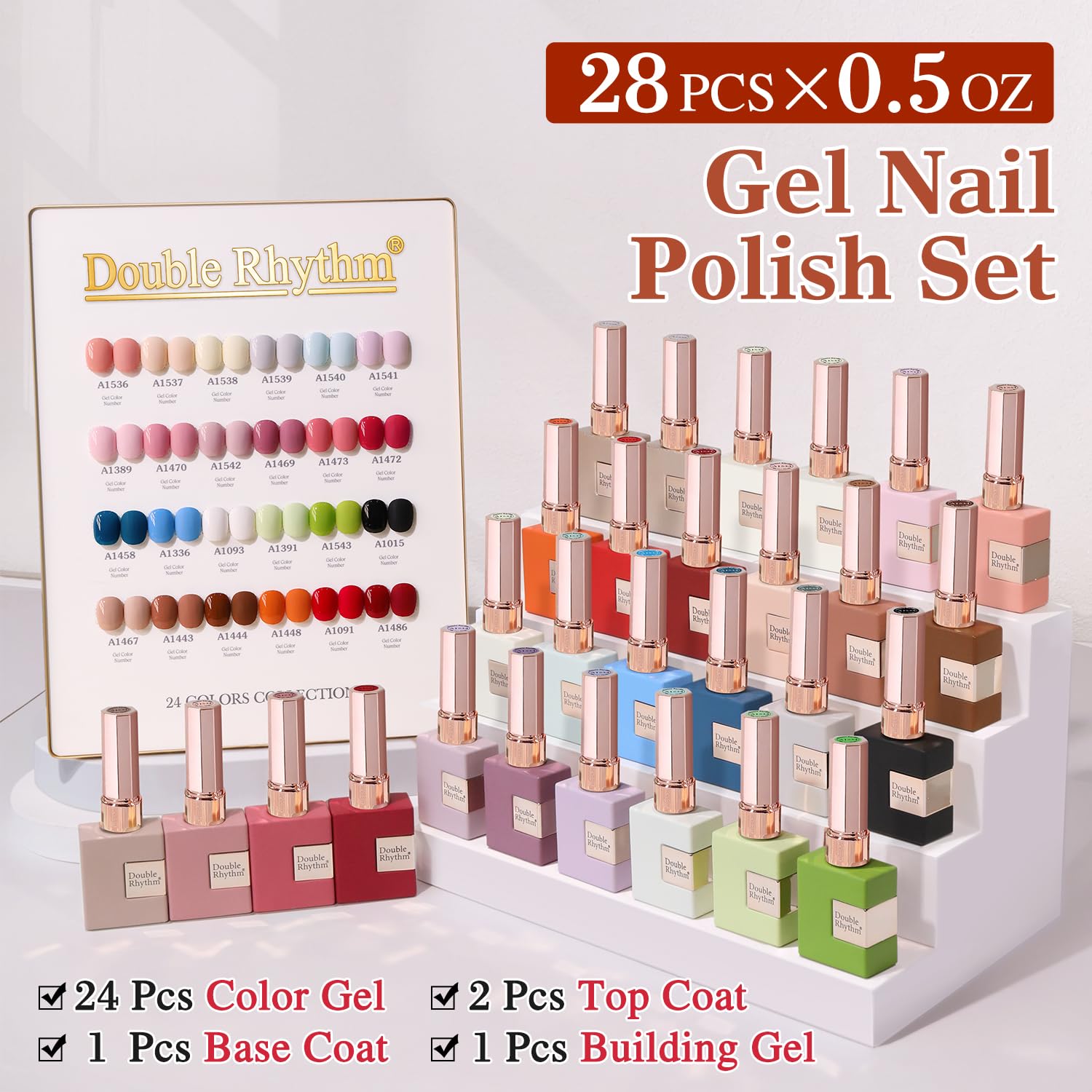 Double Rhythm 28Pcs 0.5Oz Gel Nail Polish Set Same Color Same Bottle Soak Off Gel Polish Kit Nail Art Manicure Salon DIY at Home for Women (White Pink Collection-T24-2)