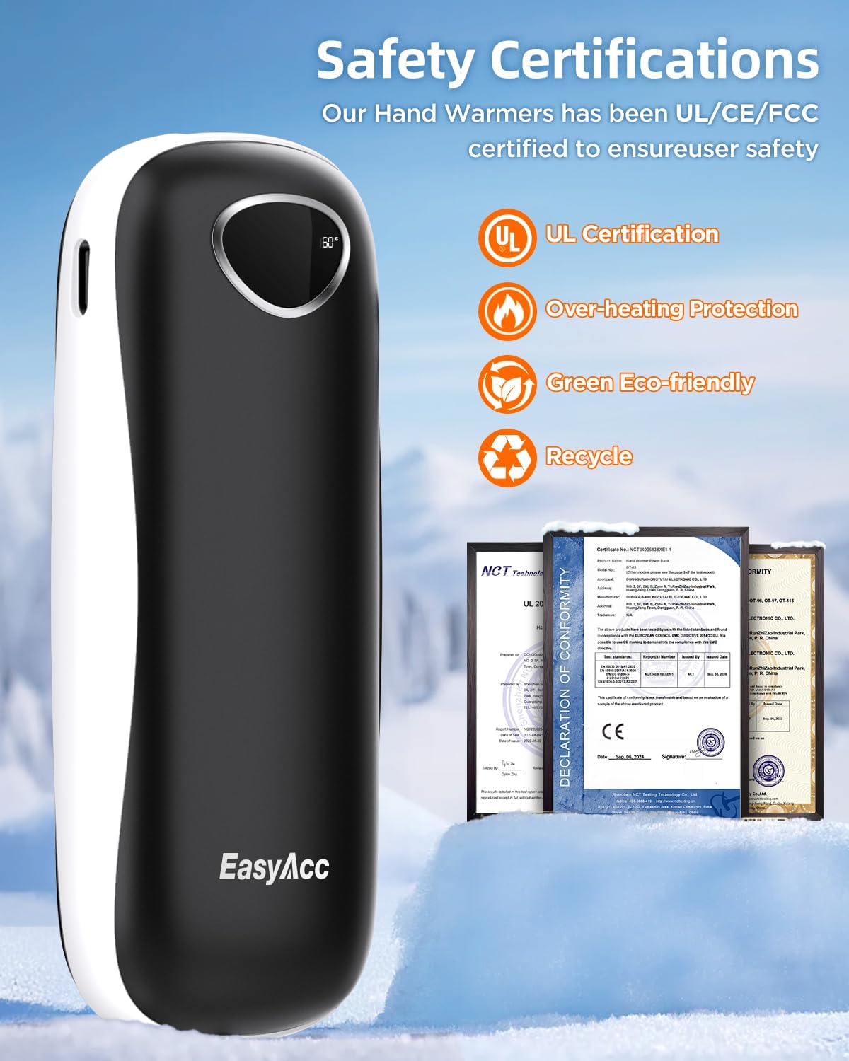 - 【A Heartfelt Gift for Cold Hands and Raynaud's Patients】Warm their hearts and hands with EasyAcc 2 pack rechargeable hand warmer, the perfect gift for those with Raynaud's disease or perpetually cold hands. Lightweight and rechargeable, it's ideal for home, work, or on-the-go. Give the gift of warmth and show your loved ones they’re truly cared for—because everyone deserves a little extra comfort this winter!