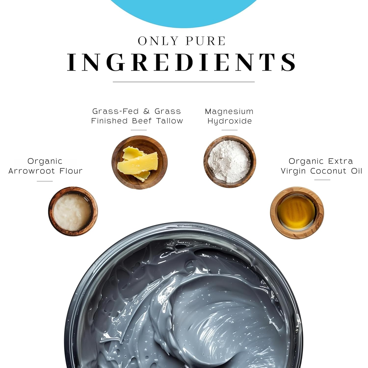 - Nature-Inspired Ingredients: Our coconut magnesium deodorant for men and women is made with real coconut oil, arrowroot oil, magnesium hydroxide, and grass-fed beef tallow which are suitable for those with delicate skin