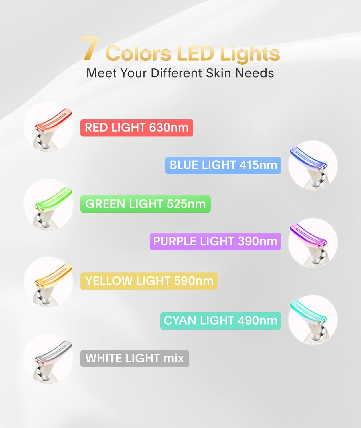 Red Light Therapy for Face and Neck, 7 Color Beauty Face Massager Tool, Vibrating Facial Massager with Thermals for Wrinkles, Double Chin, Glossy White