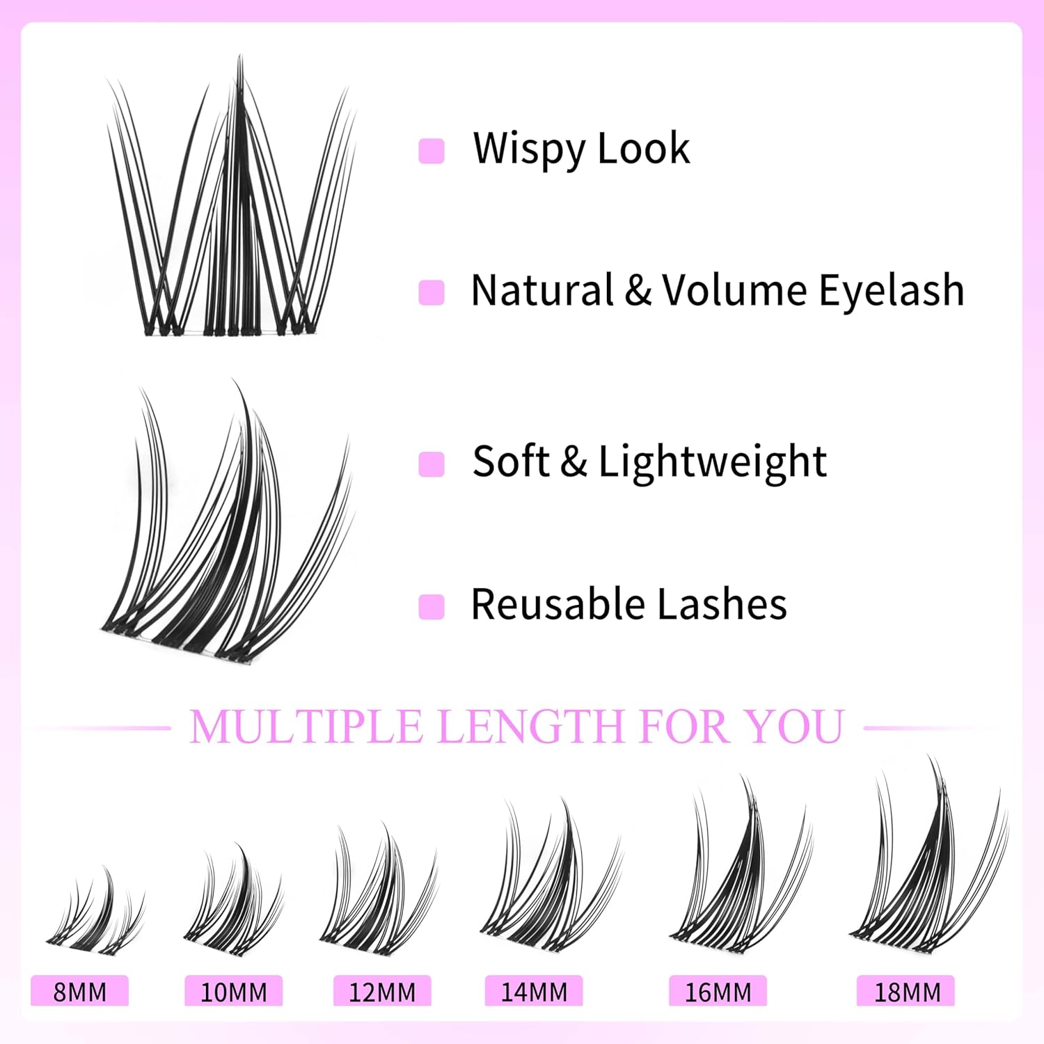 - Newbie's Five-Second Lashes : Eyelash clusters with wider bands, only 4-6 clusters per eye, ensure that lash newbies can simply and quickly complete a perfect lash extension