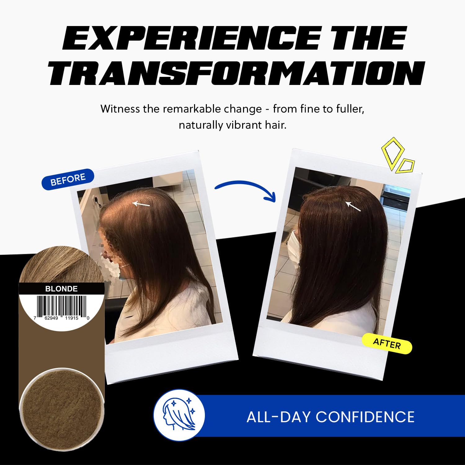 - All-Day Hold: Enjoy a worry-free day with hair fibers for thinning hair that stay put even in the most unpredictable weather; No need for constant touch-ups, our hair fibers provide lasting confidence whether at work, out with friends, or during an intense workout