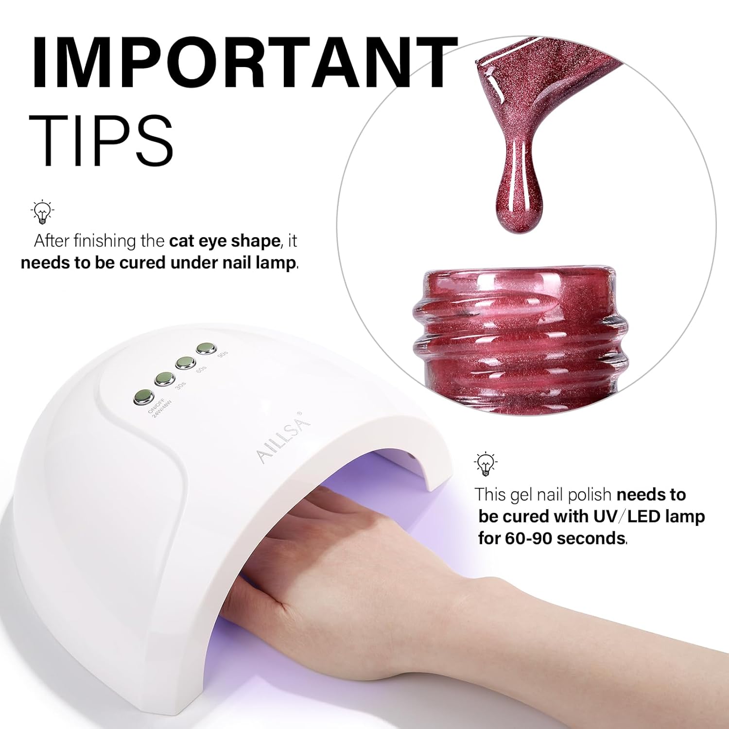 - What’s Included: Including a 0.51 fl oz (15 ml) red gel polish and a magnetic block. Use the magnet to shape the magnetic powder and create custom cat-eye designs. Enjoy a salon-quality manicure experience right at home.