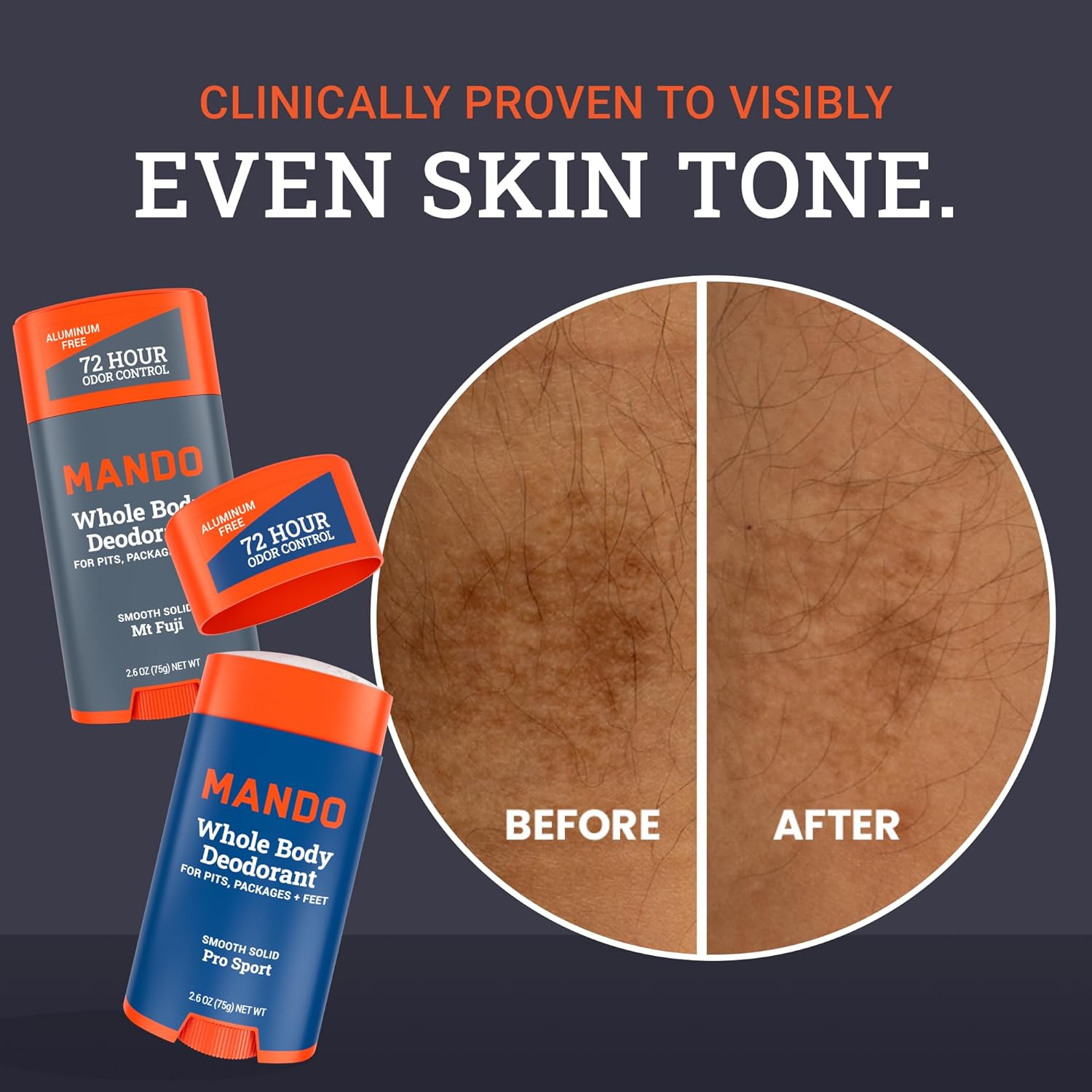 Mando Whole Body Deodorant For Men - Smooth Solid Stick - 72 Hour Odor Control - Aluminum Free, Baking Soda Free, Skin Safe - 2.6 Ounce (Pack of 2) (Mt Fuji & Pro Sport)