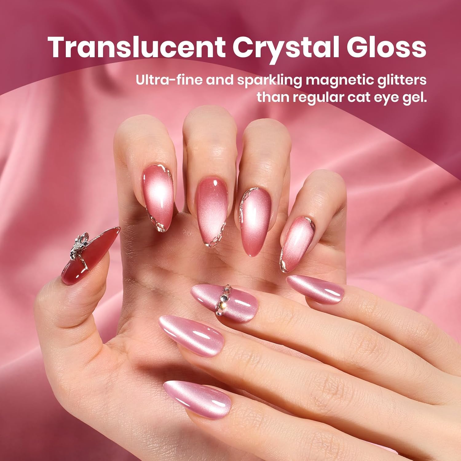 - 【Porcelain Glow Collection】Beetles launches latest 6 colors silver pink red brown black fall cat eye set! The inspiration for this set comes from: with its smooth,ceramic finish and captivatingshine, these hues radiates quietsophistication and long-lasting charm.This gel cat eye nail polish is equipped with a magnetic tool, uses the magnet to creat different cat eye styles(color number: f639,f640,f641,f642,f643,f709)