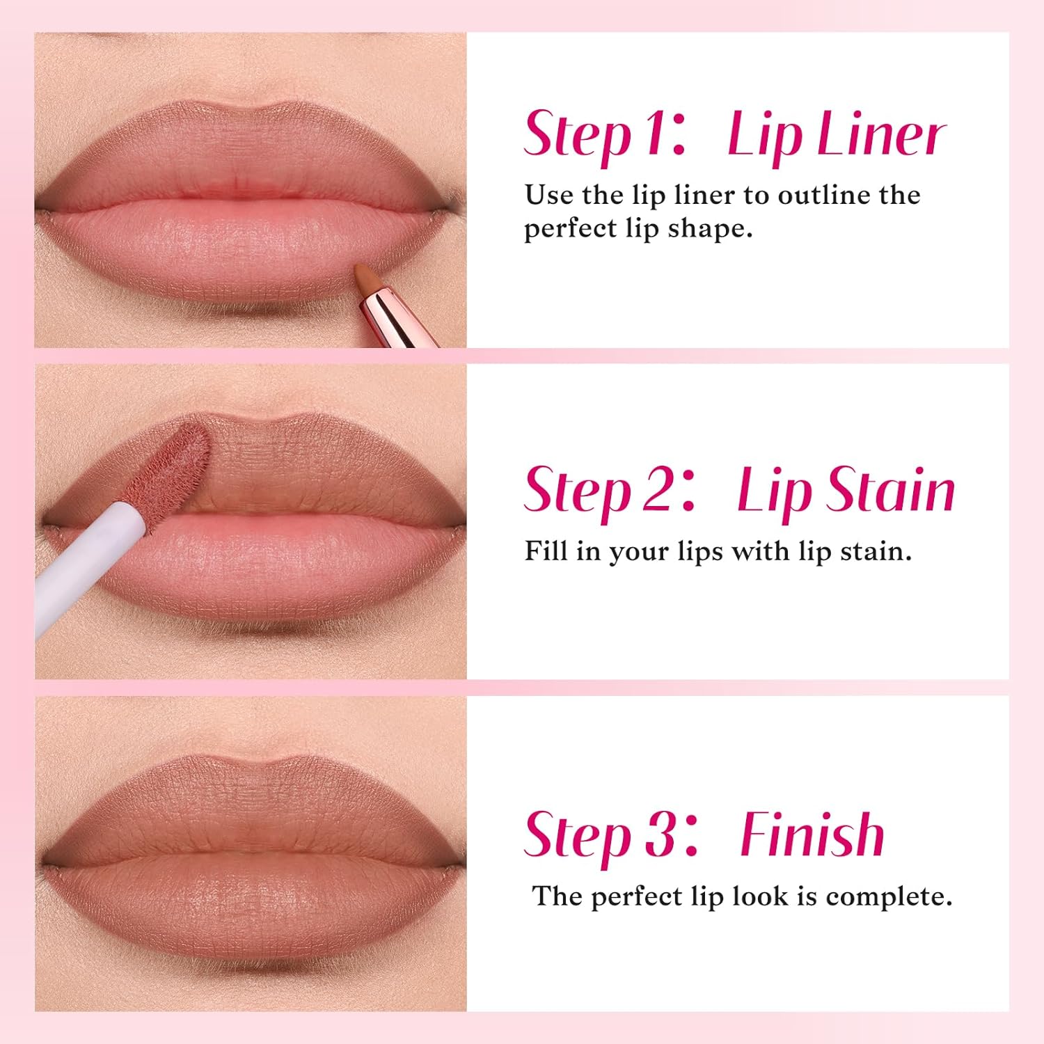 - 【Easy to Apply & Safe Formula】 Begin by outlining your desired lip shape with the lip liner, then fill in your lips with lipstain to achieve the perfect look. Beginners can also use it easily. Meanwhile, we use safe vegan formulas that are not tested on animals, so you can use them with more confidence.