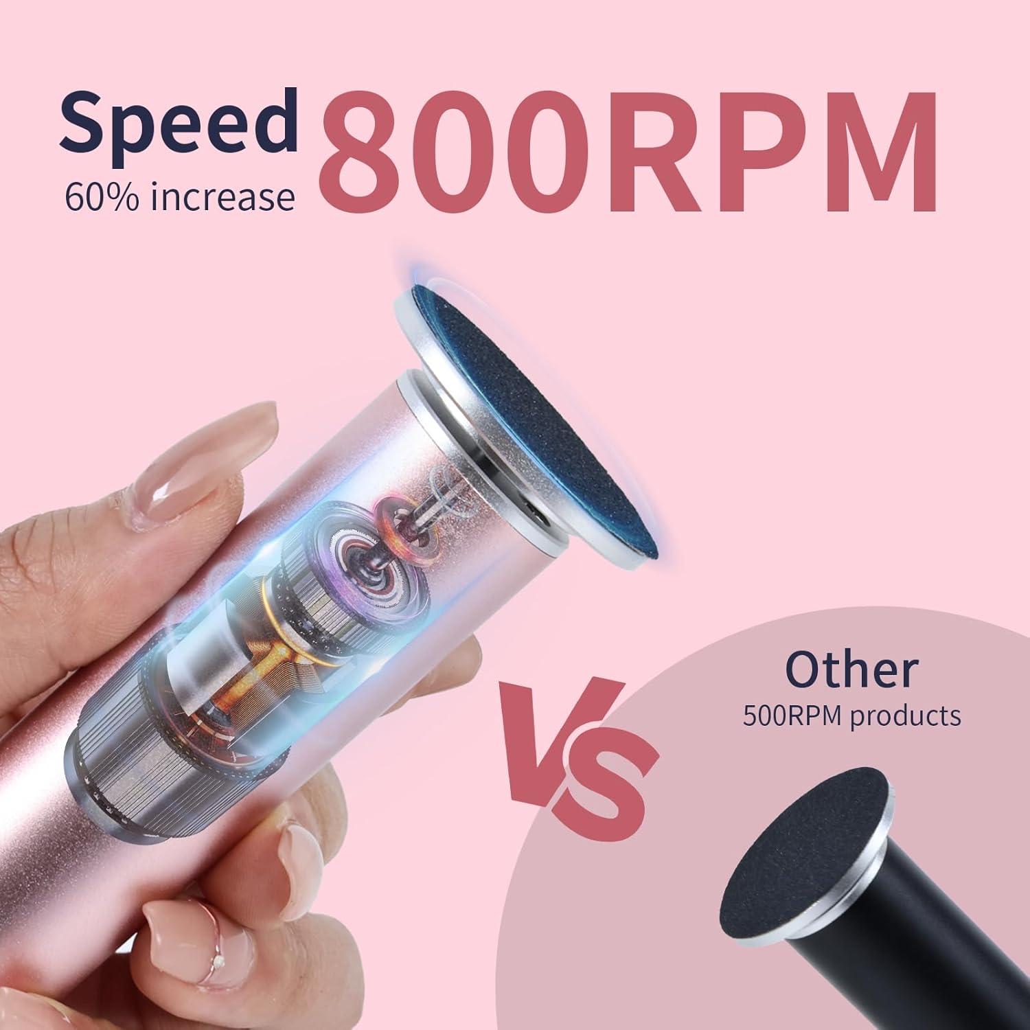 - Upgraded Stepless Adjustable Speed: The electric foot filer offers precise control over rotational speed, with a maximum of 800 RPM—60% faster than the 500 RPM of other models—allowing for more efficient removal of calluses