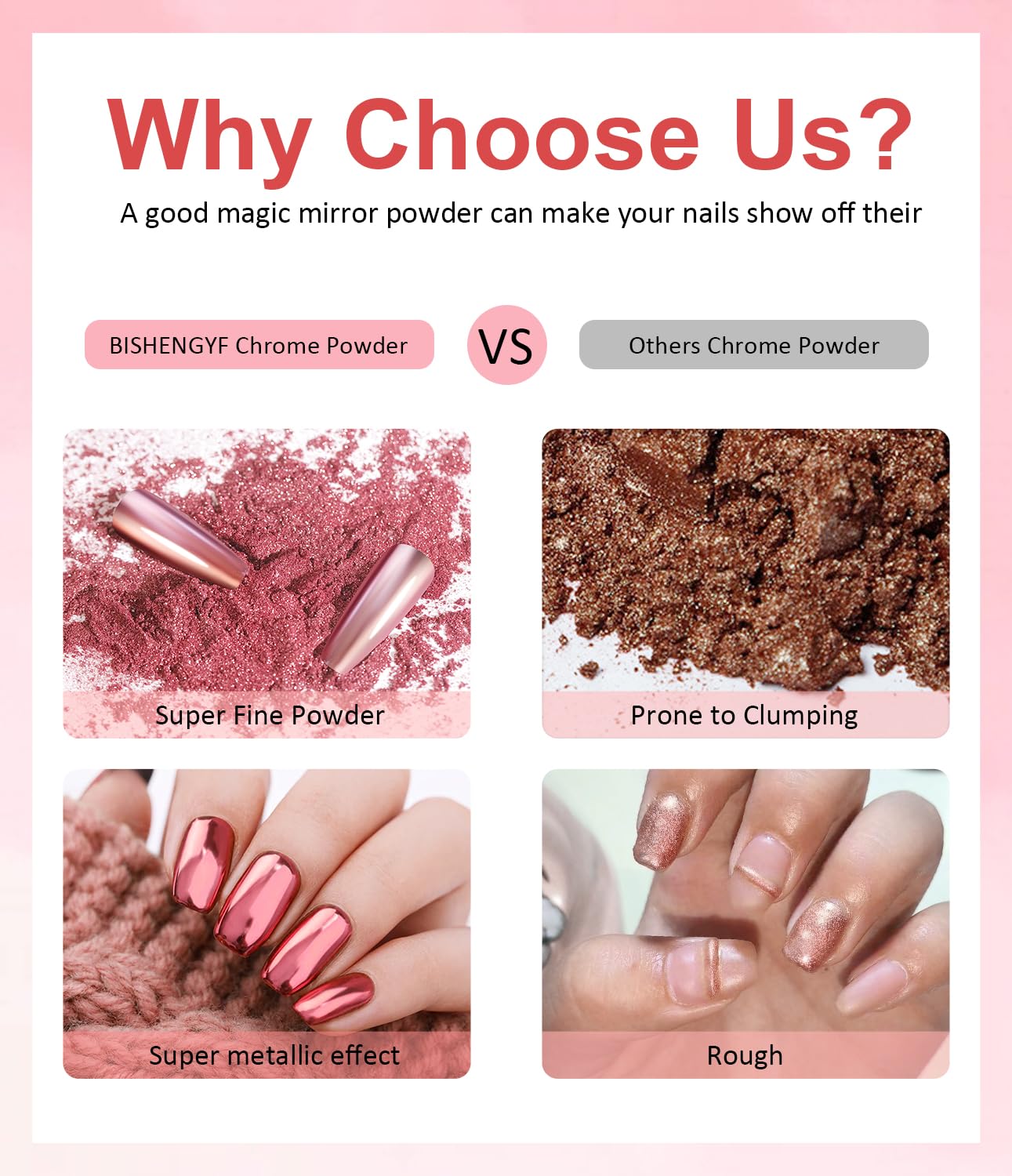- Perfect Gift Choice: Delight the special women in your life with our rose gold chrome nail powder! Our metallic chrome nail powder makes an excellent gift for friends, girlfriends, mothers, and daughters on occasions like Christmas, Valentine's Day, birthdays, or Mother's Day.