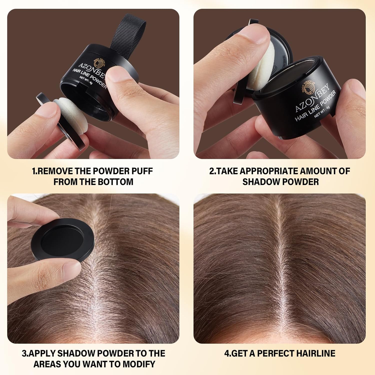 - 4.The Azonbey Root Cover Up Powder And Brush: This hairline powder works wonders on roots for women and men, providing an instant hair touch up powder for roots .It's an essential hair color powder root touch up for anyone needing quick and effective coverage. You can use your finger or our Beauty Brush Make it Simple and Useful.