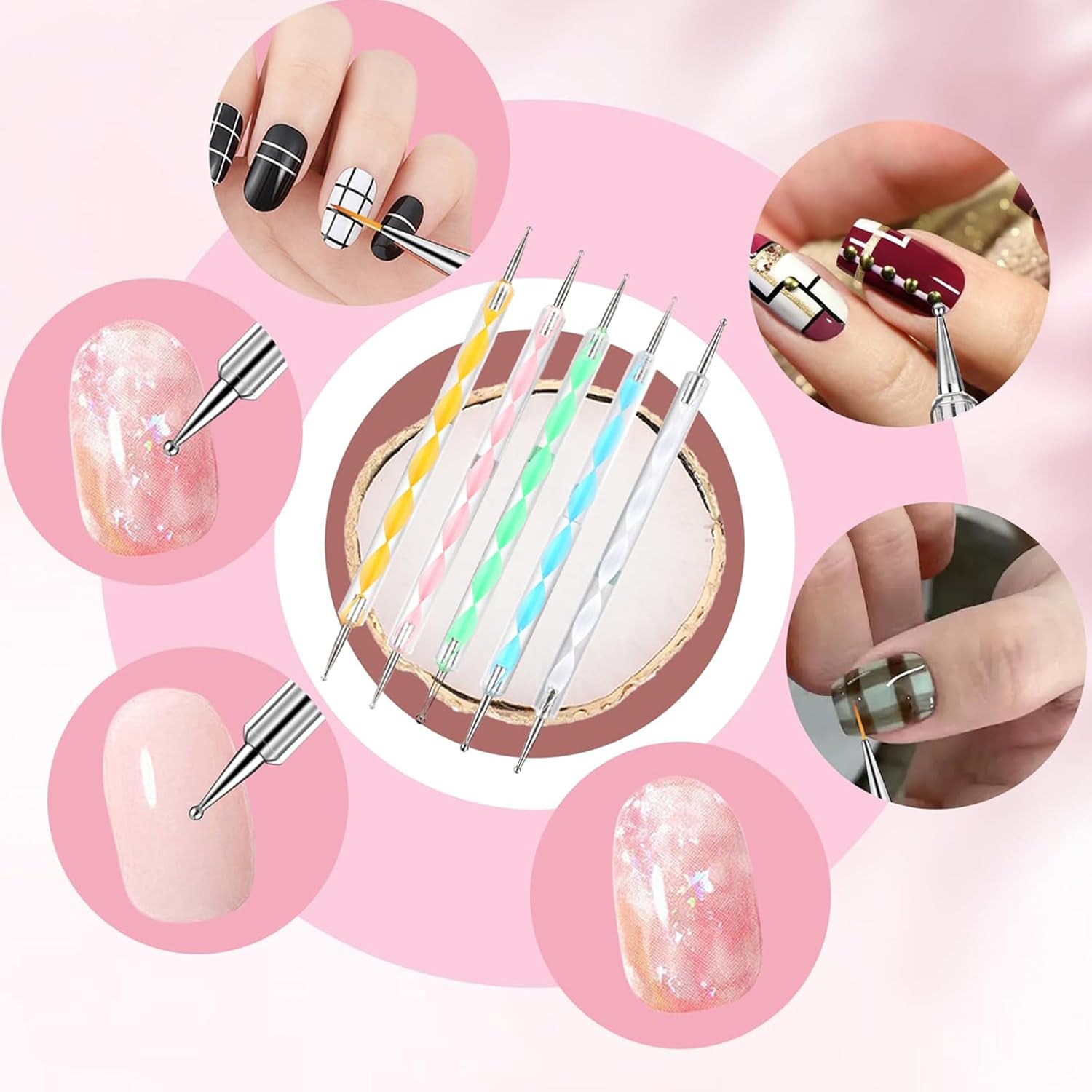 - 【Easy To Clean】The nail polish mixing palette and dual end dot brush and cosmetic makeup spatula stirring rod are very easy to clean, just rinse with water and dry with paper. For nail brushes, you can rinse them off with water as soon as possible after use. Various cleaners are not recommended and may damage the bristles.