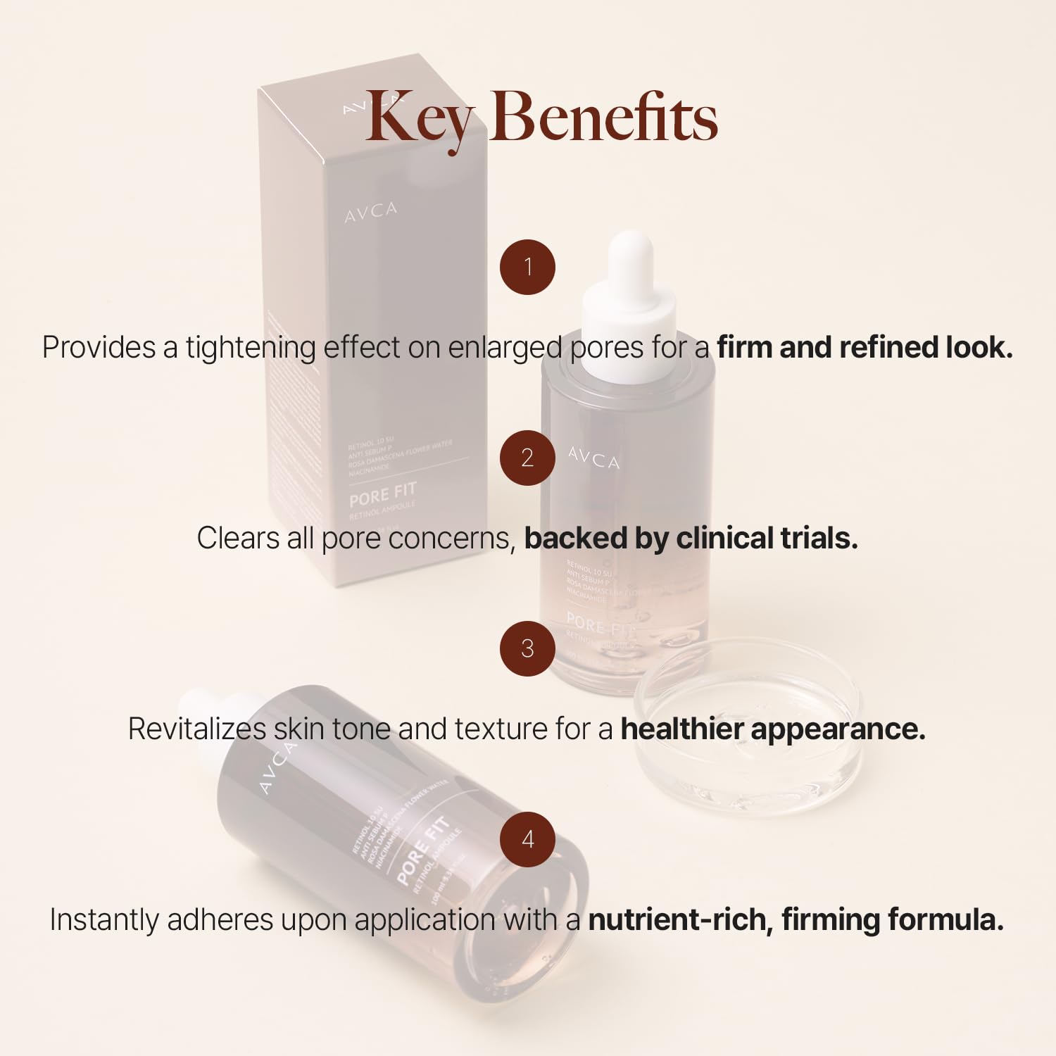 AVCA Pore Fit Retinol Ampoule for Large Pores, Fine Lines, Anti Aging & Wrinkle Care 100ml/3.38fl. oz.