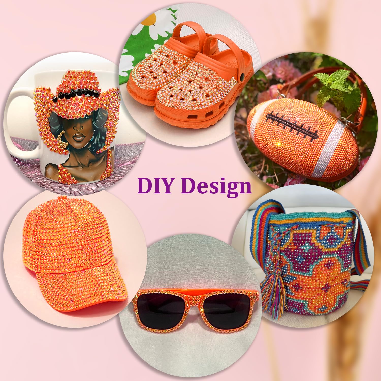 - PACKAGE CONTENT -- Include 1 box with 24 grids, featuring a variety of sizes, approx. 25000 pcs bling-out resin rhinestones(Orange AB). 1 tweezers and 1 pickup pen are included for easily picking up gems. 3 B7000 adhesive jewels glue for jewelry making