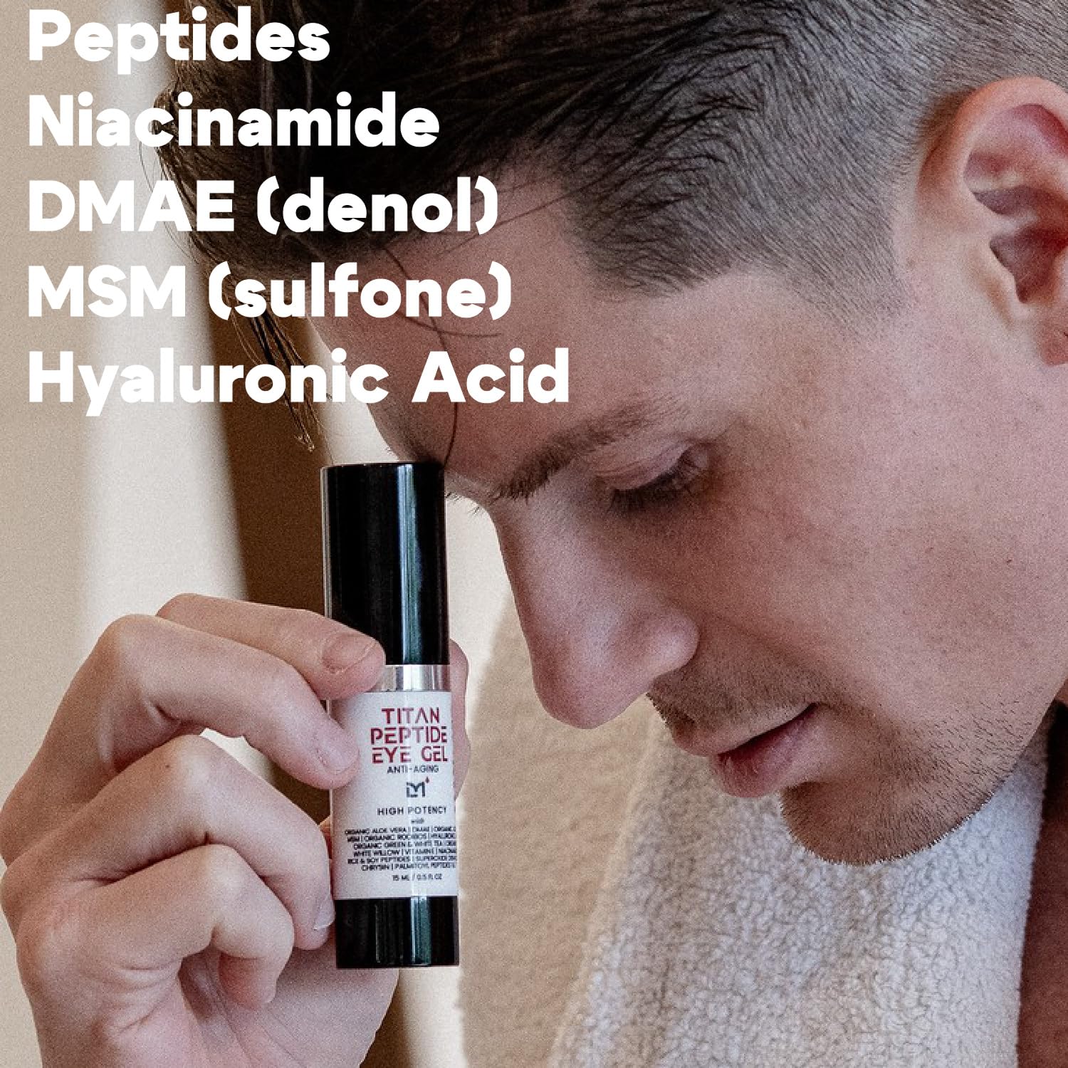 Titan Peptide Cooling Eye Gel – Mens Eye Cream – Anti-Aging Bags & Dark Circle – Eye Bags Treatment for Men – High Potency – Puffy Eyes Treatment for Men – Peptides, HA, DMAE, MSM – Unscented