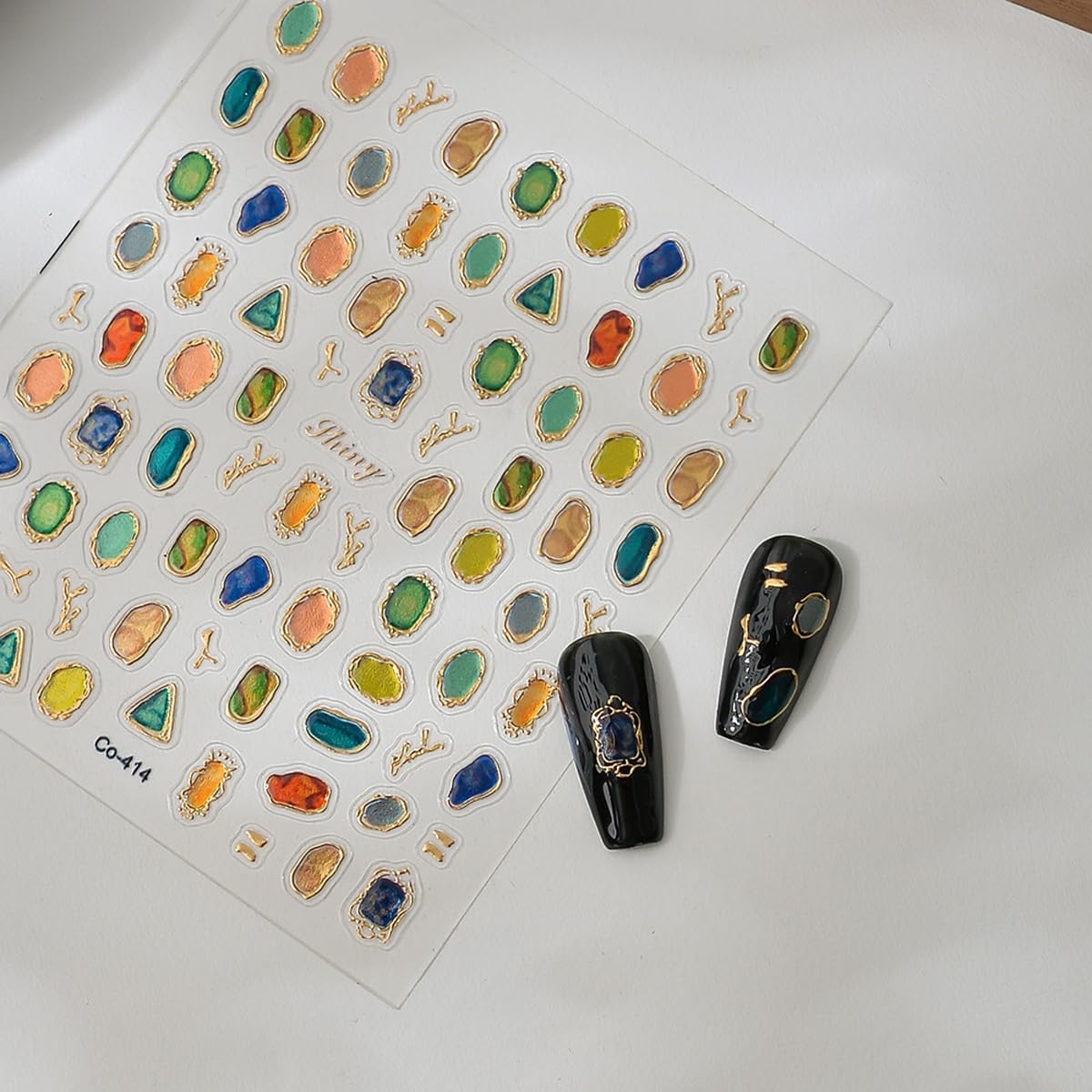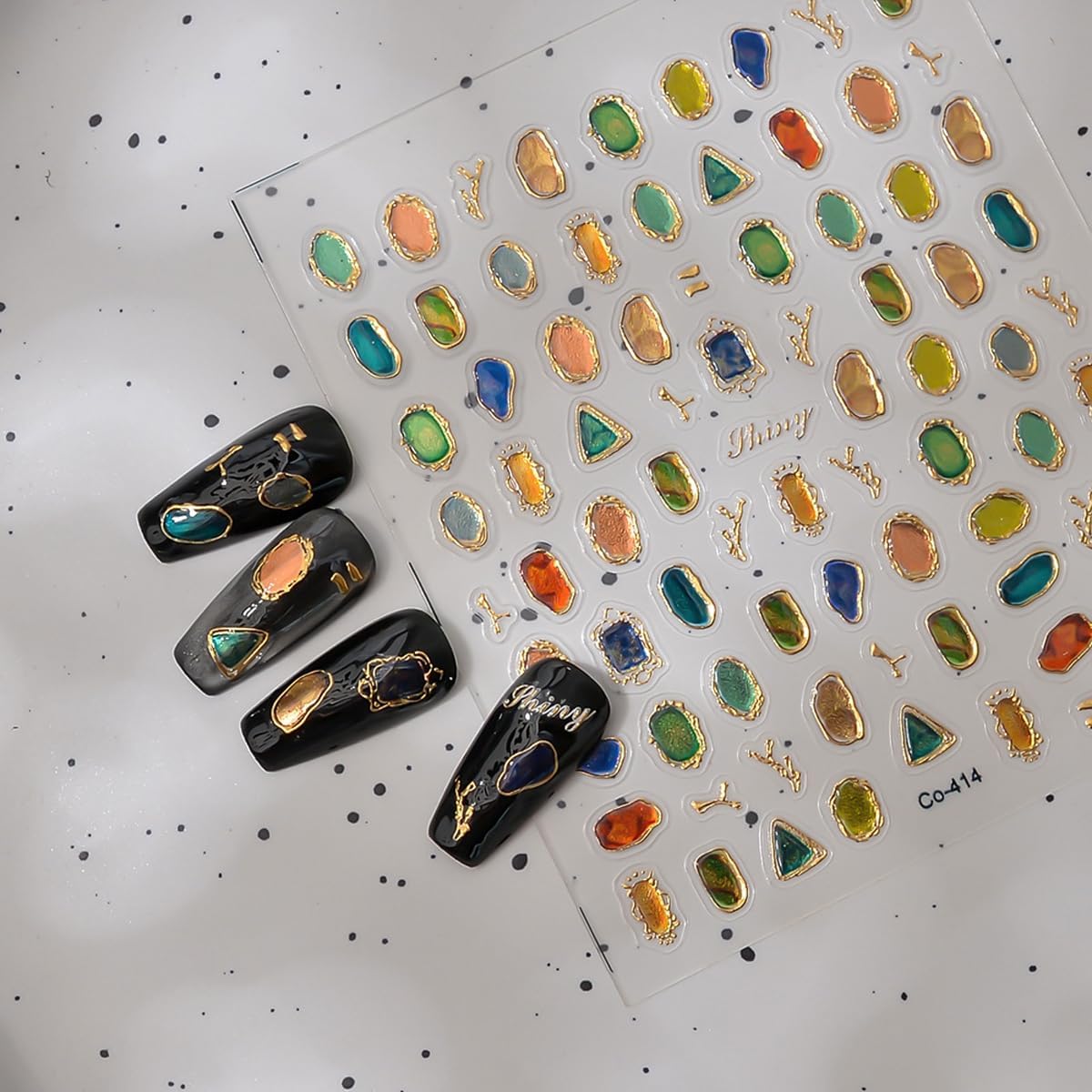 - Package: You will receive 1 sheets of gems nail art stickers with gold trim.Show off your festive spirit with these eye-catching stickers,adding a trendy and celebratory touch to your nails this season