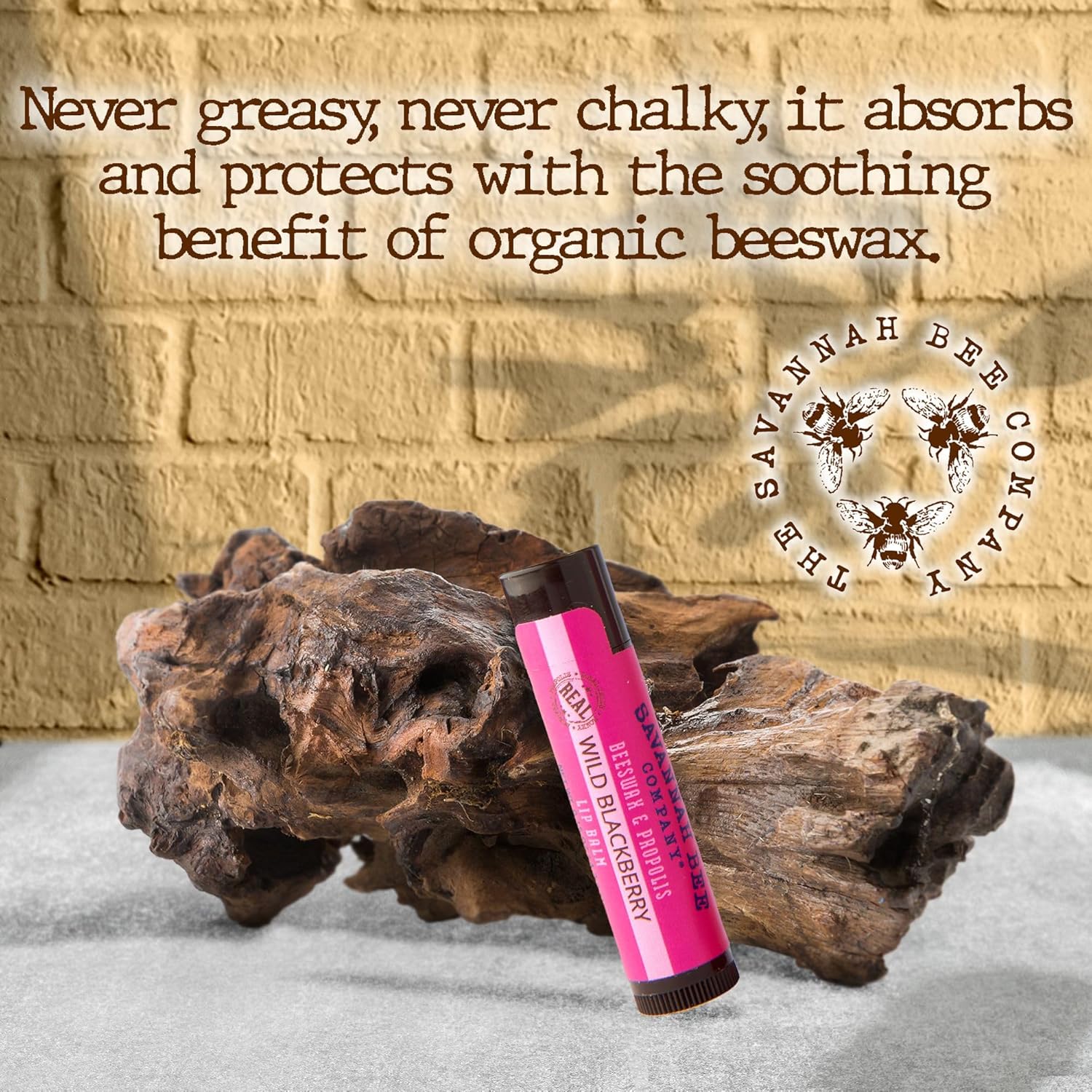 Savannah Bee Lip Balm Hanger 0.15 oz - Invigorating Mint Flavor - Natural Ingredients for Supple, Soft Lips - Convenient Hanger Design (.15 Oz, Wild Blackberry)