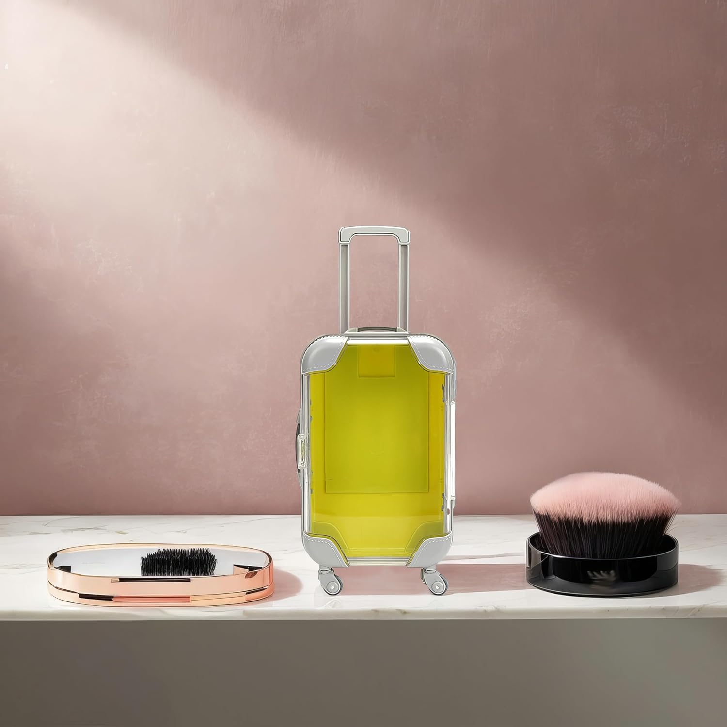 False Eyelash Storage Box, Portable Travel Organizer Mini Luggage False Eyelash Tray Makeup Tool (YELLOW)