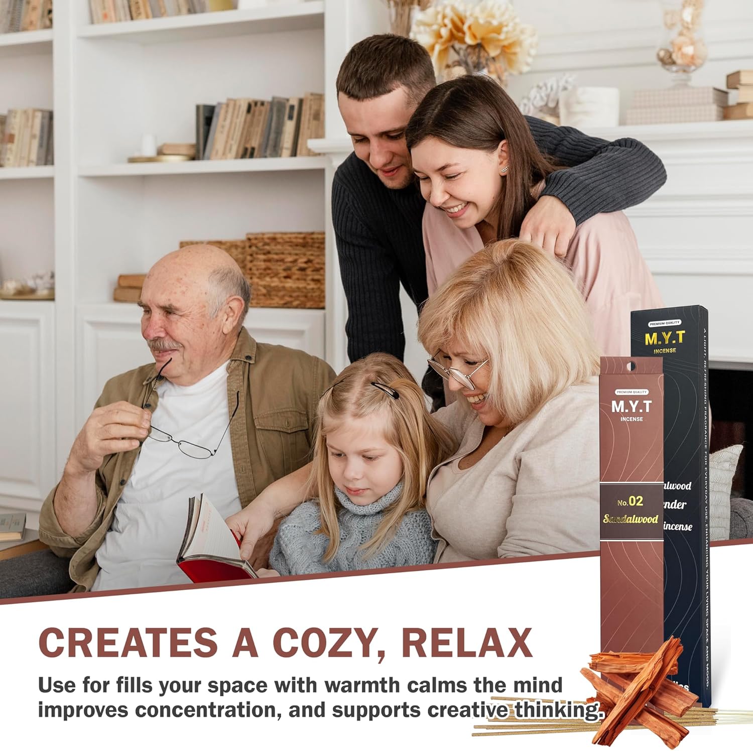 M.Y.T Natural Incense Sticks – Sandalwood, Lavender, Frankincense – Long-Lasting, Low Smoke – Relaxation, Meditation, Odor Removing – 60 Sticks