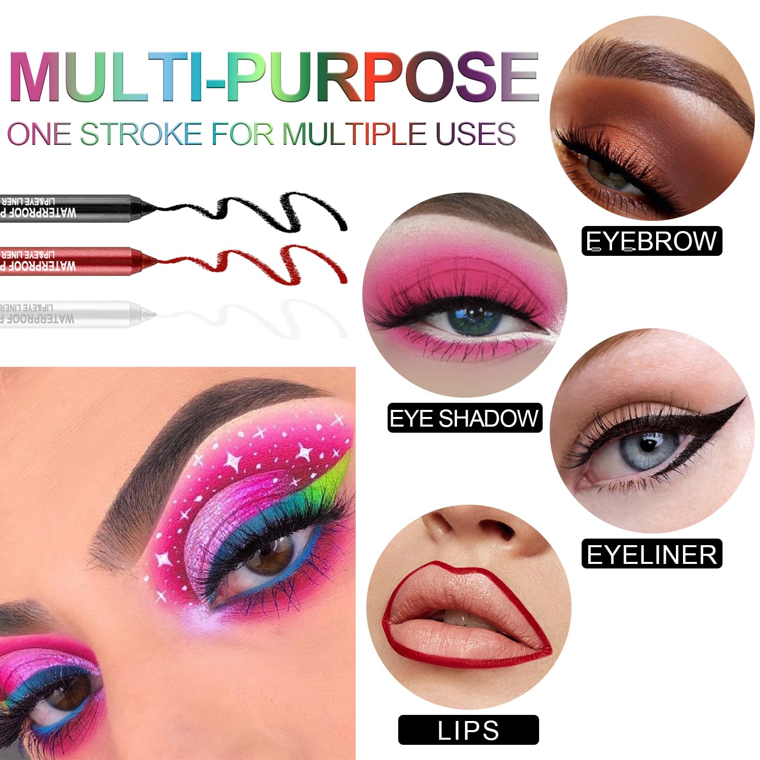 7 Colorful Eyeliner Pen Set, Eye Shadow Pencil, Pearl Eyeliner Kit Metallic Glitter Colored Eye liner for Women Eye&Lip Liner Professional Waterproof Eye Makeup (7PCS A)