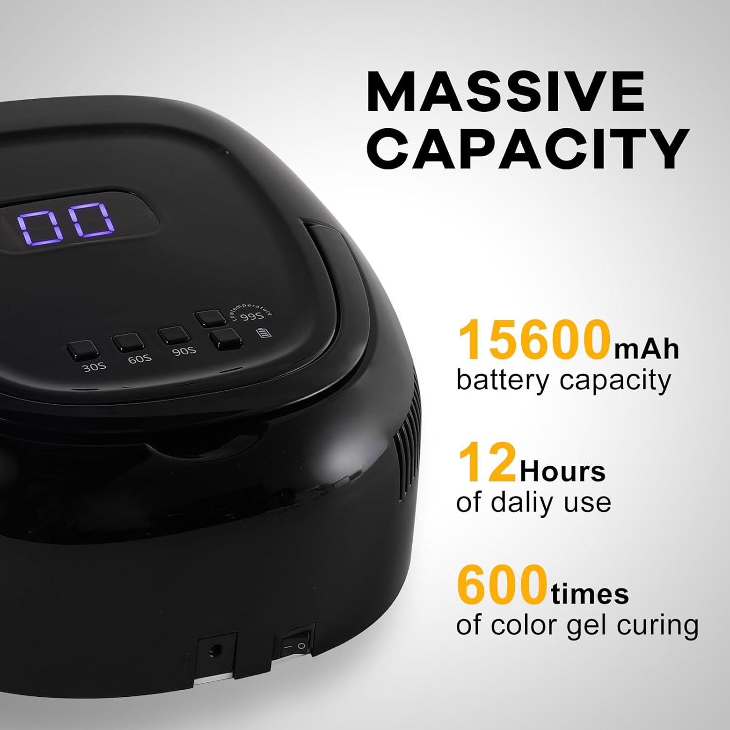 - Long-Lasting Portable Gel UV Light: Built-in 15600mAh battery supports twelve-hour runtime after three to four-hour charge; Ultimate cordless freedom for salon-quality manicures anywhere