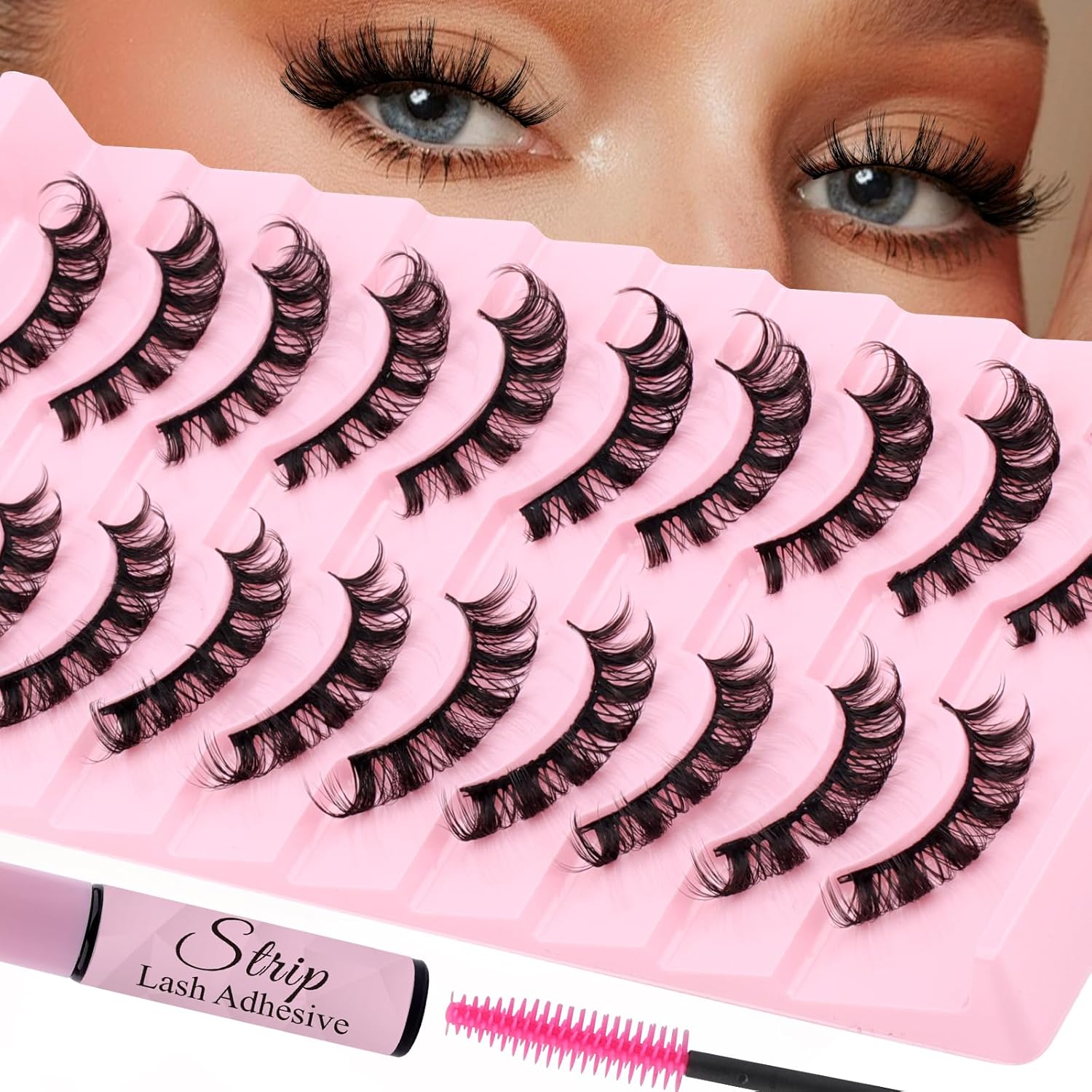 Strip Lash with Glue for DIY Lash-users: 10 Pairs, DIY, Natural Look, Fluffy, Manga, Wispy, Waterproof, Anime, Cat Eye, D Curl, DH06-02