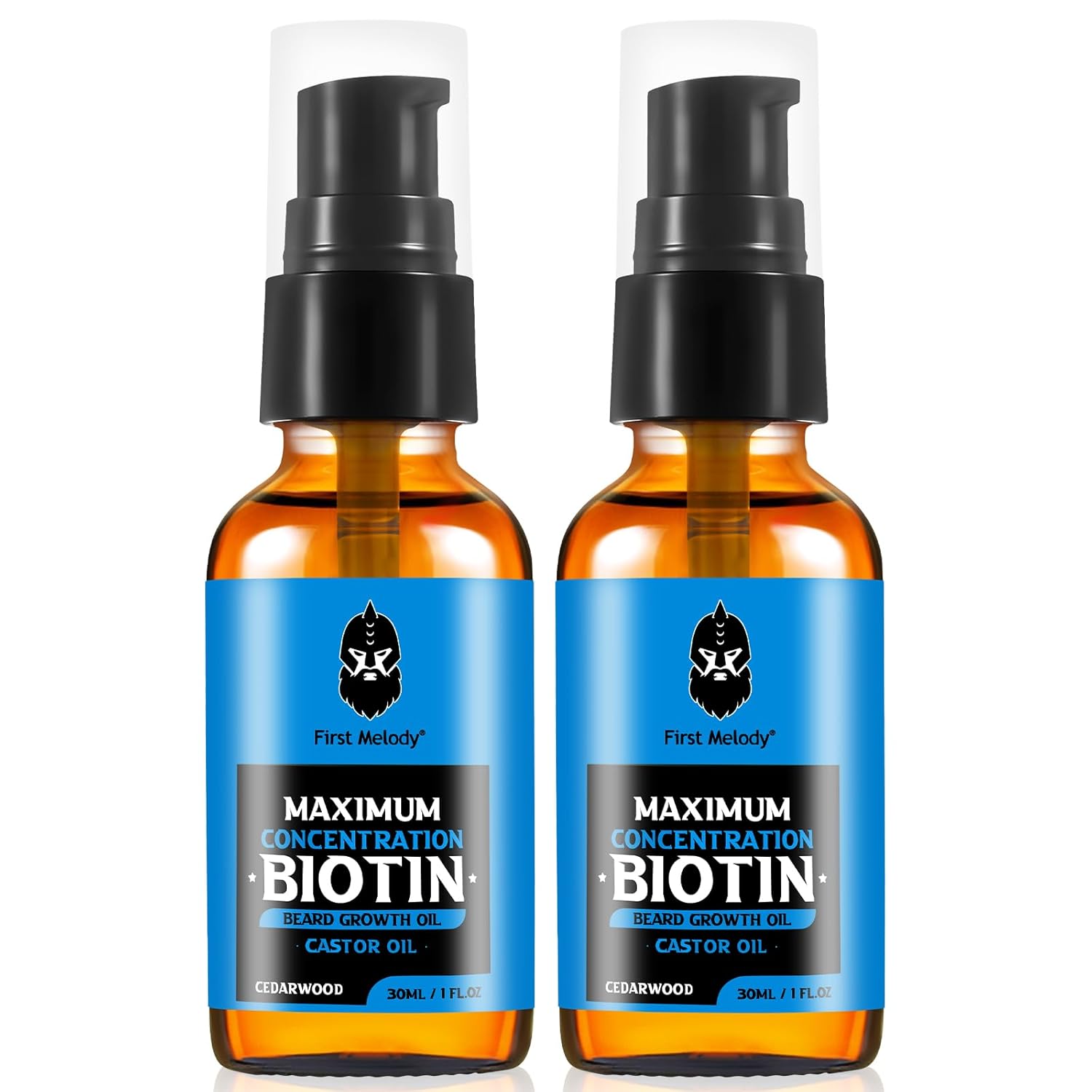 Beard Oil,Maximun Thickening Biotin, with Castor Oil and Argan & Jojoba Oils, Promotes Beard Growth, Styles, Strengthens & Softens Beards & Mustaches,1 Ounce*2(2 Pack)