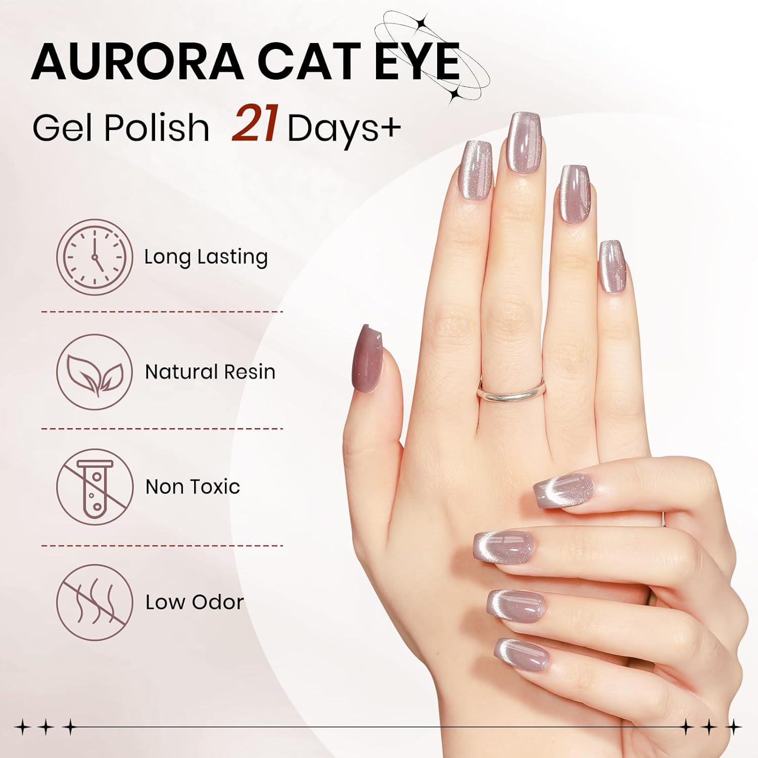 - Ideal Gift and Long Lasting: This shimmer cat eye magnetic gel is easy to apply and will last for 21+days with operation, will show different effects with different angles, and it's the popular gift for birthdays, Christmas, Mother's Day
