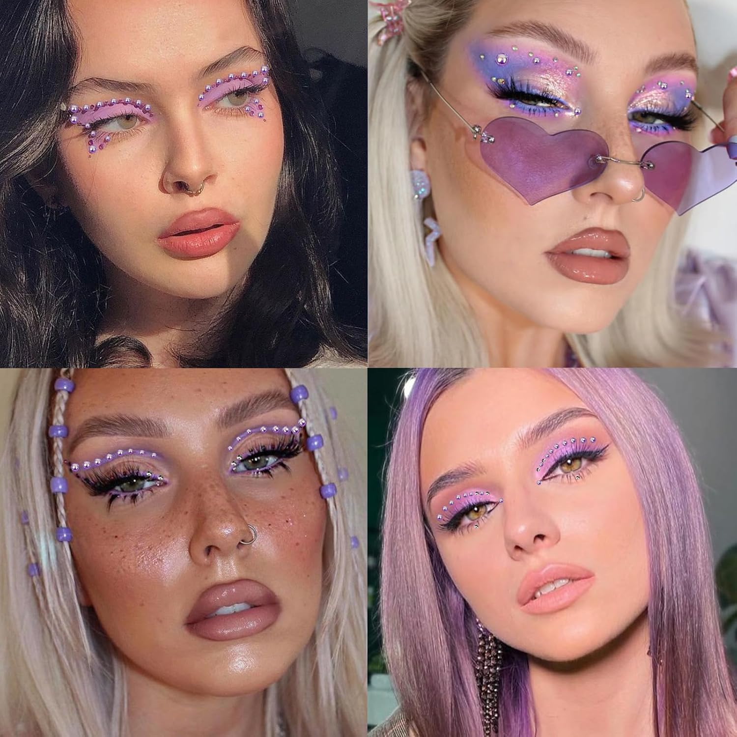Nail Art Pearls with Rhinestones Glue Gel Flatback Pearls Nail Charms Luxurious Nails Supplies Accessories Gold Silver Gems Jewelry Pearl for Women Nails Design(Purple)