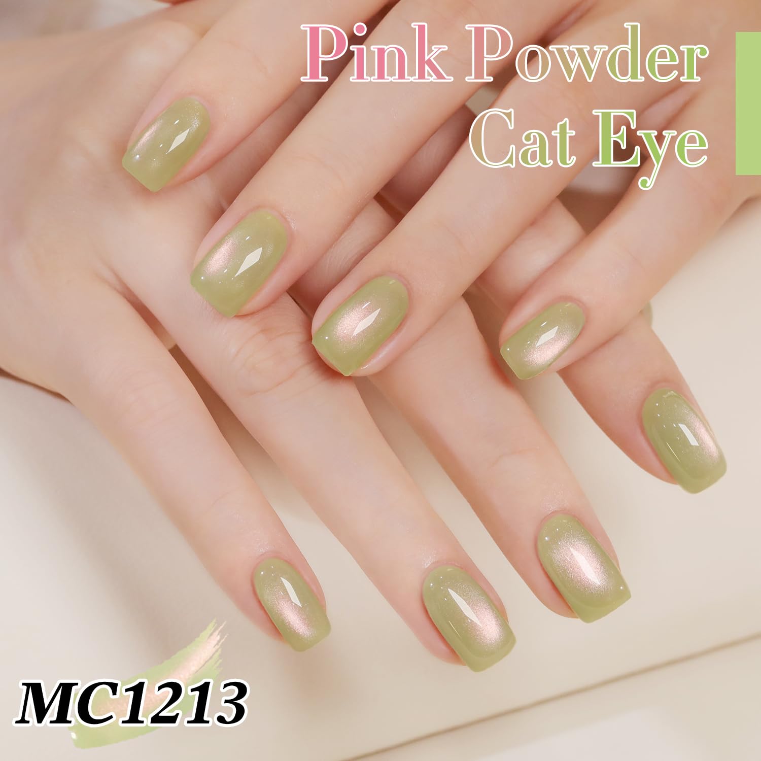 Double Rhythm 0.5 OZ Cat Eye Gel Polish with Magnet 15ML Holographic Glitter Shimmer Translucent Jelly Color Magnetic Nail Polish Salon DIY at Home (Green-MC1213)