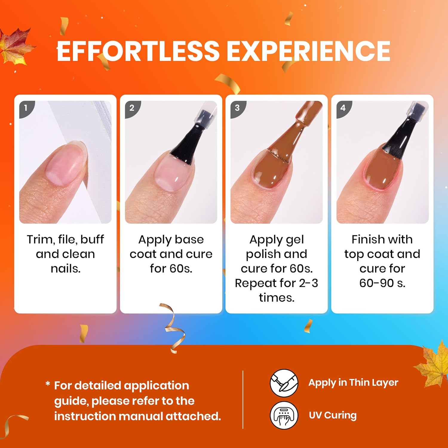 - 20 Colors Gel Nail Polish Set β Includes 20 fashionable shades: nude, brown, red, glitter, and more. Perfect for fall winter seasons and occasions, from daily wear to party looks.