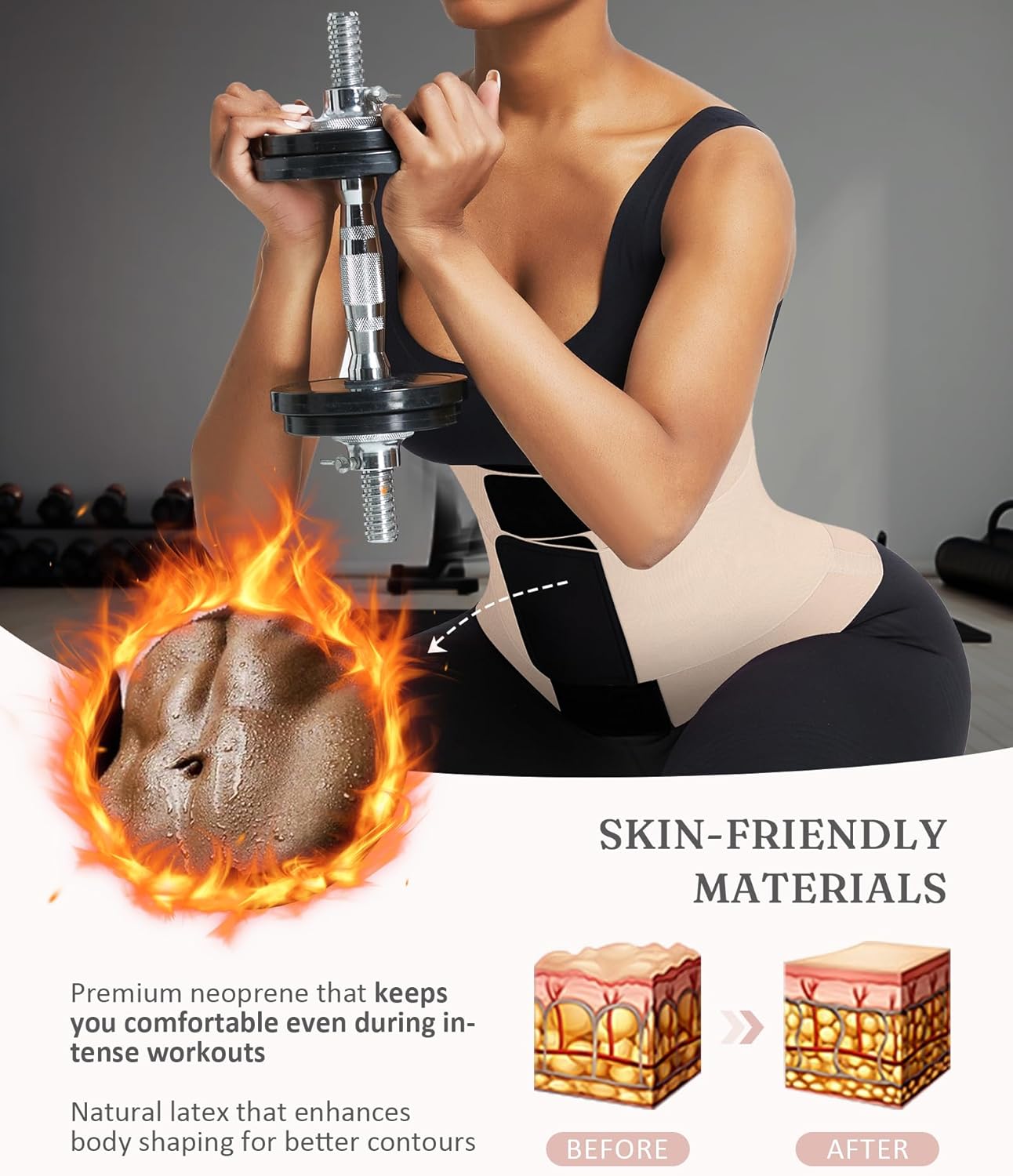 • Premium Stretch Fabric: Our waist trainer crafted from a blend of polyamide and spandex for targeted support and comfortable compression. The breathable material promotes natural heat retention during activity. Attention:Contains Latex Fiber. May cause allergic reactions in sensitive individuals. If you are allergic to latex or if you are not sure about this, please consult to your doctor for instructions before usage.