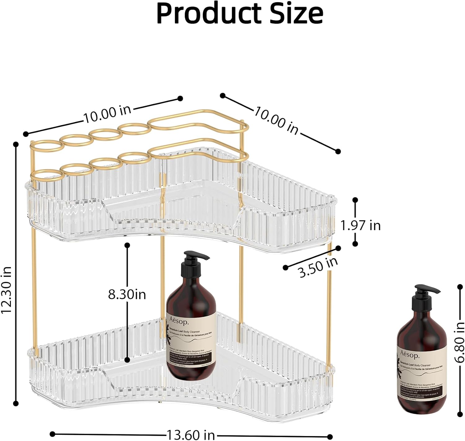 - ăMultiple Size Options Save Space ăThe 2-tier design measures 13.6 x 10 x 12.3 inches, while the 3-tier version measures 13.6 x 10 x 18.1 inches. The countertop organizer can effectively save your space. Suitable for various scenarios such as bathroom, kitchen, bedroom, vanity, etc