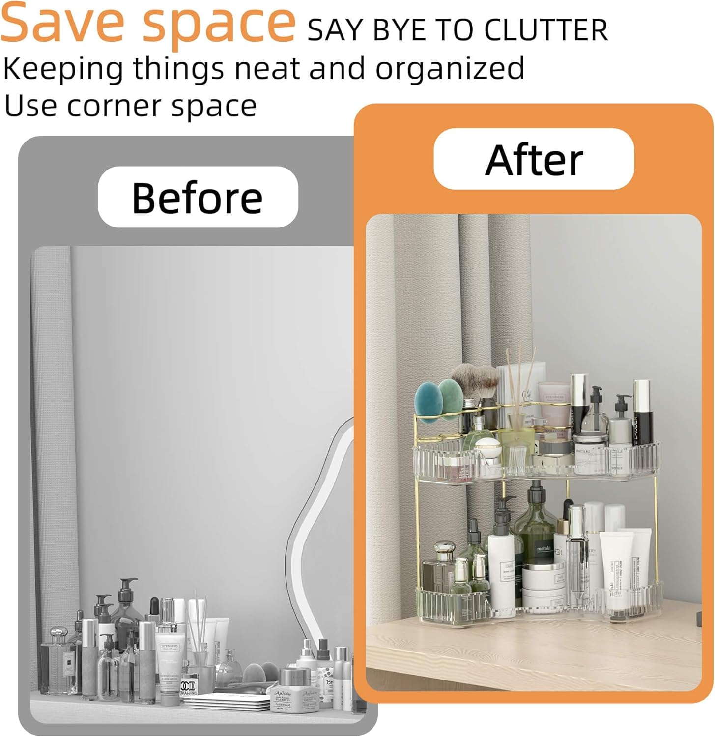 - ăIdeal Gift & Customer ServiceăOur makeup countertop organizer is ideal gift for many holidays: Christmas, New Year, Valentine's Day, Mother's Day, bridal showers, birthdays, etc. If you have any questions after receiving this item, please contact us.