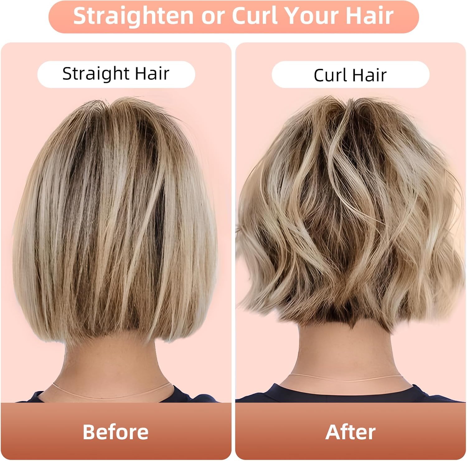 - 【Smart, Safe & Effortless Styling】 Style with confidence, anywhere. Four precise temperature settings (302-410°F) cater to all hair types, from fine to coarse. 360° anti-scald teeth protect from burns, making it safe for quick styling on the go. An 8-minute auto-shutoff provides extra safety, so you can toss it back in your bag without a second thought.