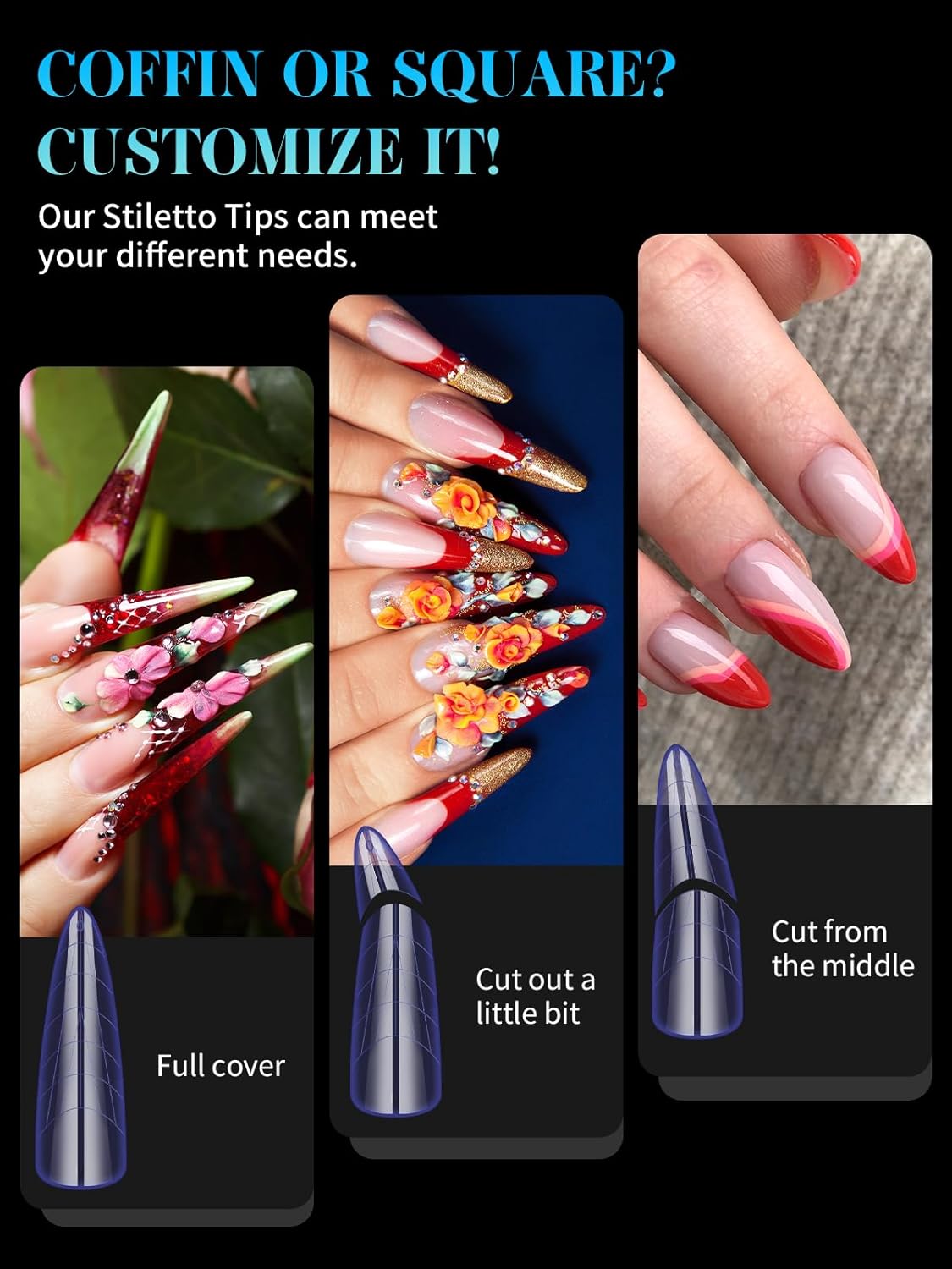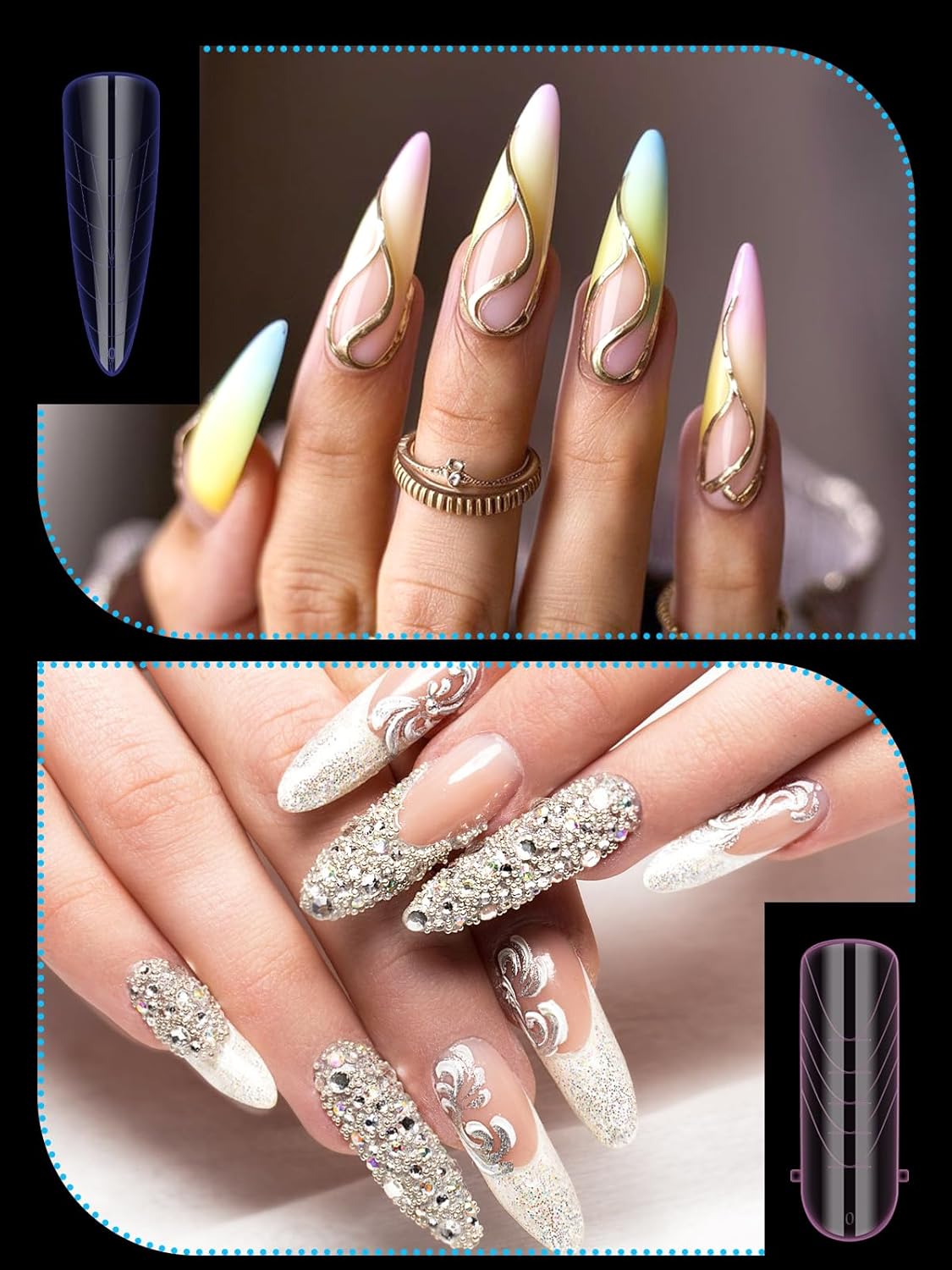 - 【Sturdy No C Curve Gel Nail Forms】Reusable extra long nail molds are made with high quality material, which is strong, tough, and reusable, providing you with a different lengths nail art experience that lasts.This artificial nails forms protective sleeve has a small handle on both sides, which is convenient for constructing gel nail extension nails, and will not stick to your hands, and can be easily removed after application.