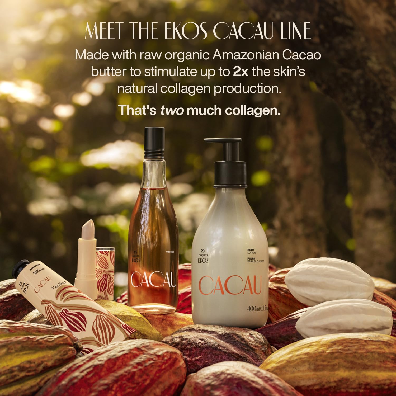 - Deeply Hydrated, Healthier Lips – Powered by Amazonian Cacau Experience long-lasting hydration and restored softness with Natura Ekos Cacau Lip Balm. Infused with raw, organic Amazonian Cacau butter, this balm stimulates up to twice the collagen production, helping to replenish dry, damaged lips while reinforcing your natural lip barrier.