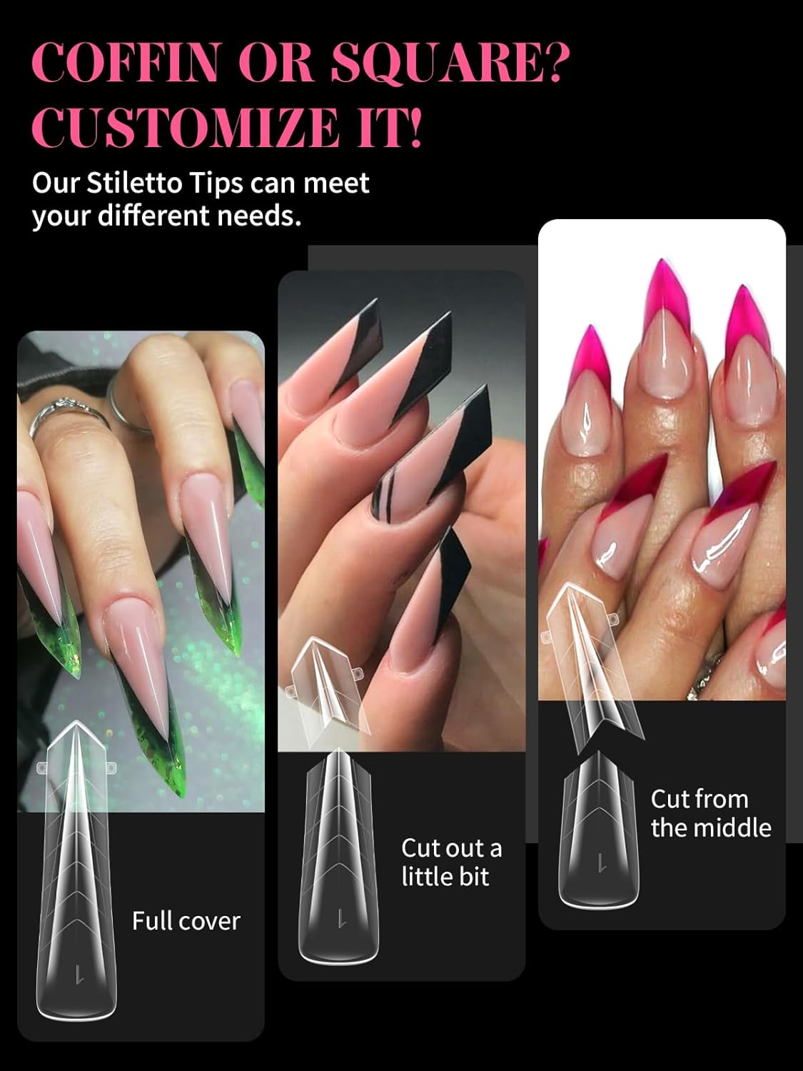 - 【Sturdy No C Curve Gel Nail Forms】Reusable extra long nail molds are made with high quality material, which is strong, tough, and reusable, providing you with a different lengths nail art experience that lasts.This artificial nails forms protective sleeve has a small handle on both sides, which is convenient for constructing gel nail extension nails, and will not stick to your hands, and can be easily removed after application.