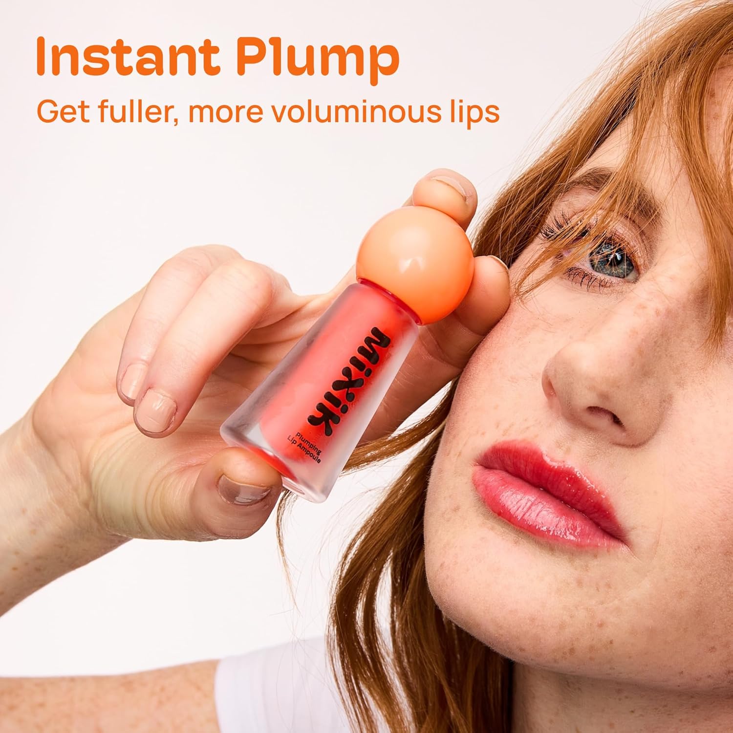 MIXIK Plumping Lip Ampoule, Hydrating Lip Gloss Plumping Ampoule made with Shea Butter & Argan Kernel Oil leaving Lips Plump, Smooth and Glossy, promotes Vibrant High-Gloss Plump Lips (Poppy Plump)