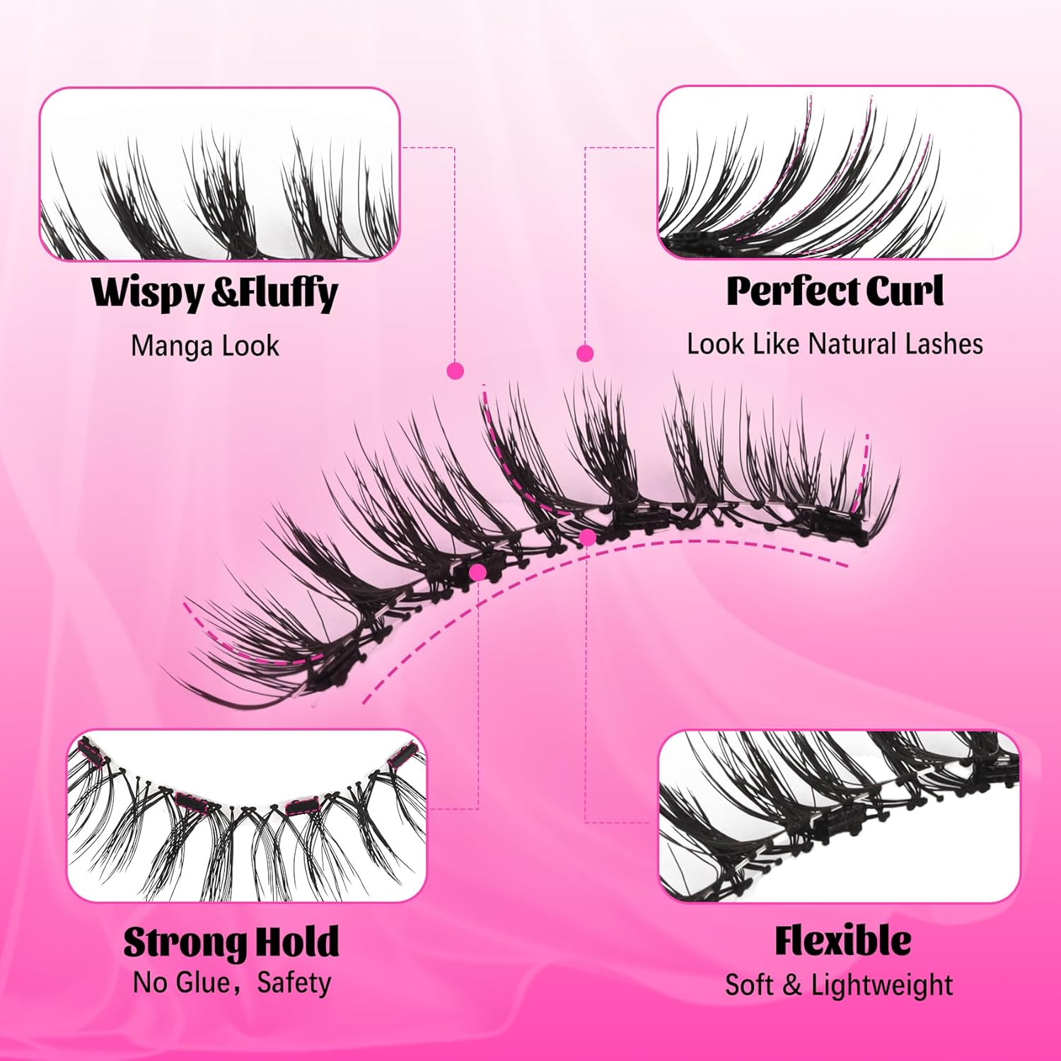 Veleasha Magnetic Eyelashes Manga Lashes Soft Lash Magnetic Lashes with Applicator Natural Look Reusable No Glue Easy to Apply & Remove Spiky False Eyelashes Eyelash Wispy (Diva)