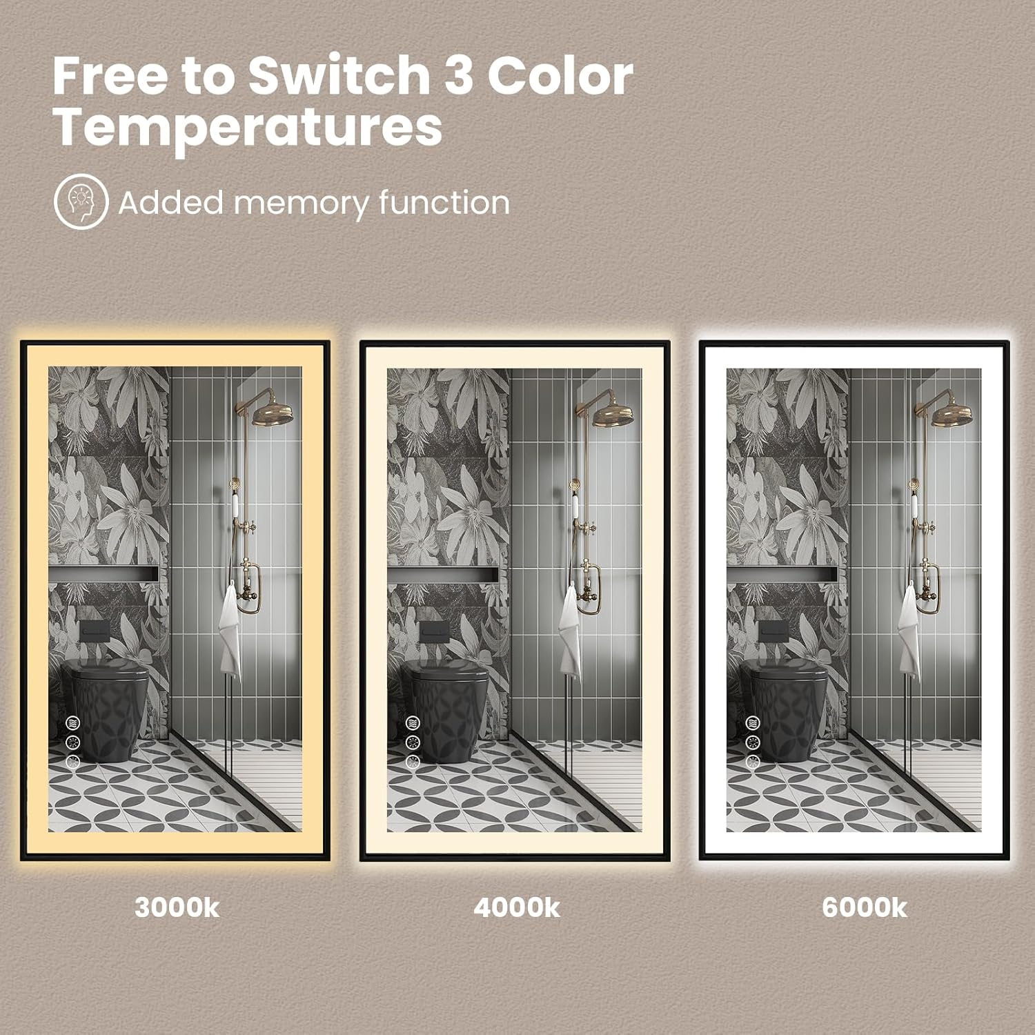 Amorho 48" X40" LED Bathroom Mirror with Black Frame, Front Light and Backlit(Controlled Separately), Stepless Dimmable, Anti-Fog, Shatter-Proof, 3 Colors, Memory