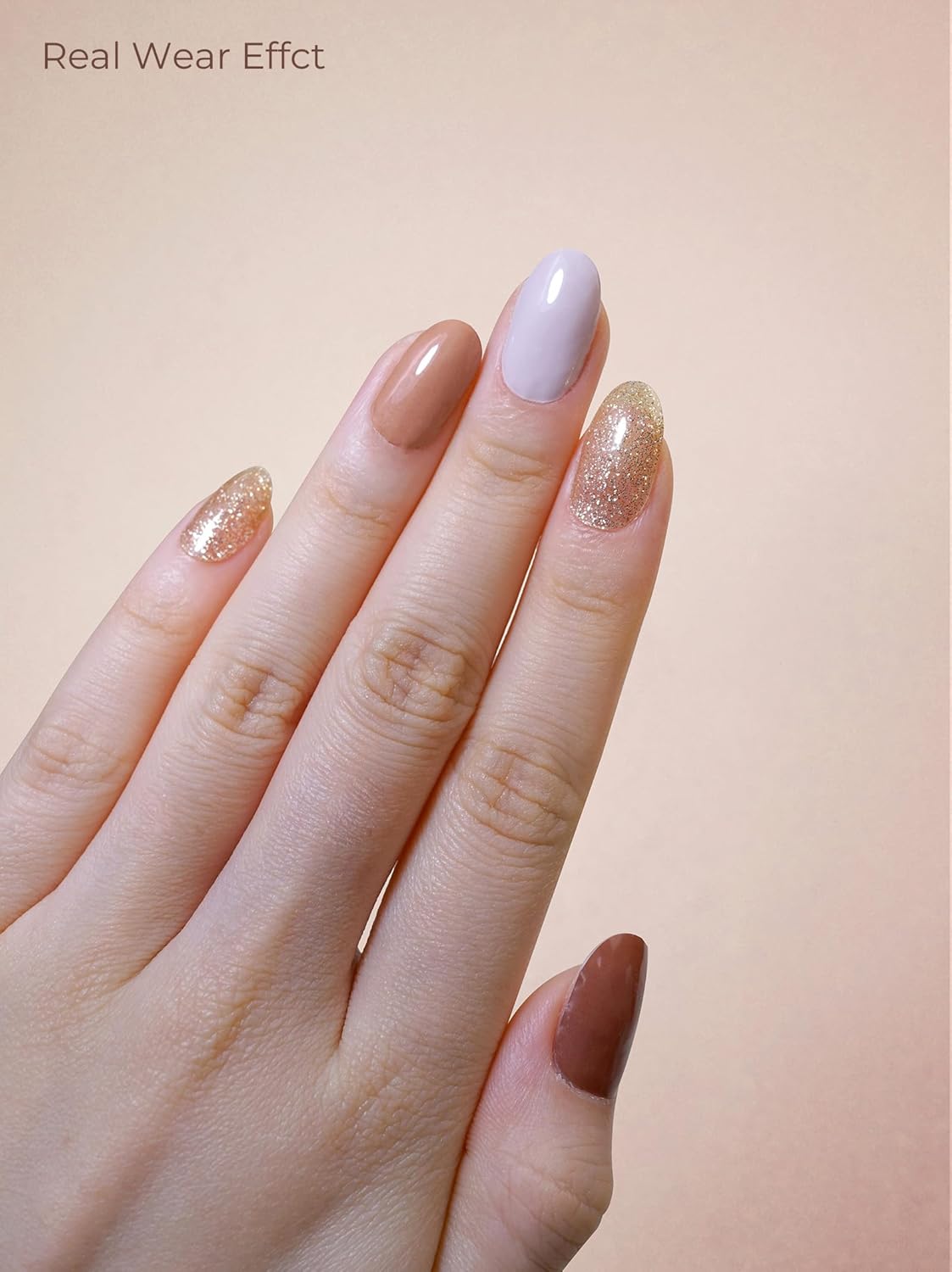 Pre Cured Gel Nail Strips - 44PCS Salon Quality Gel Nail Stickers - Long Lasting Polish Wraps for Women no UV Light Needed Easy Apply& Remove (Cinnamon Brown)