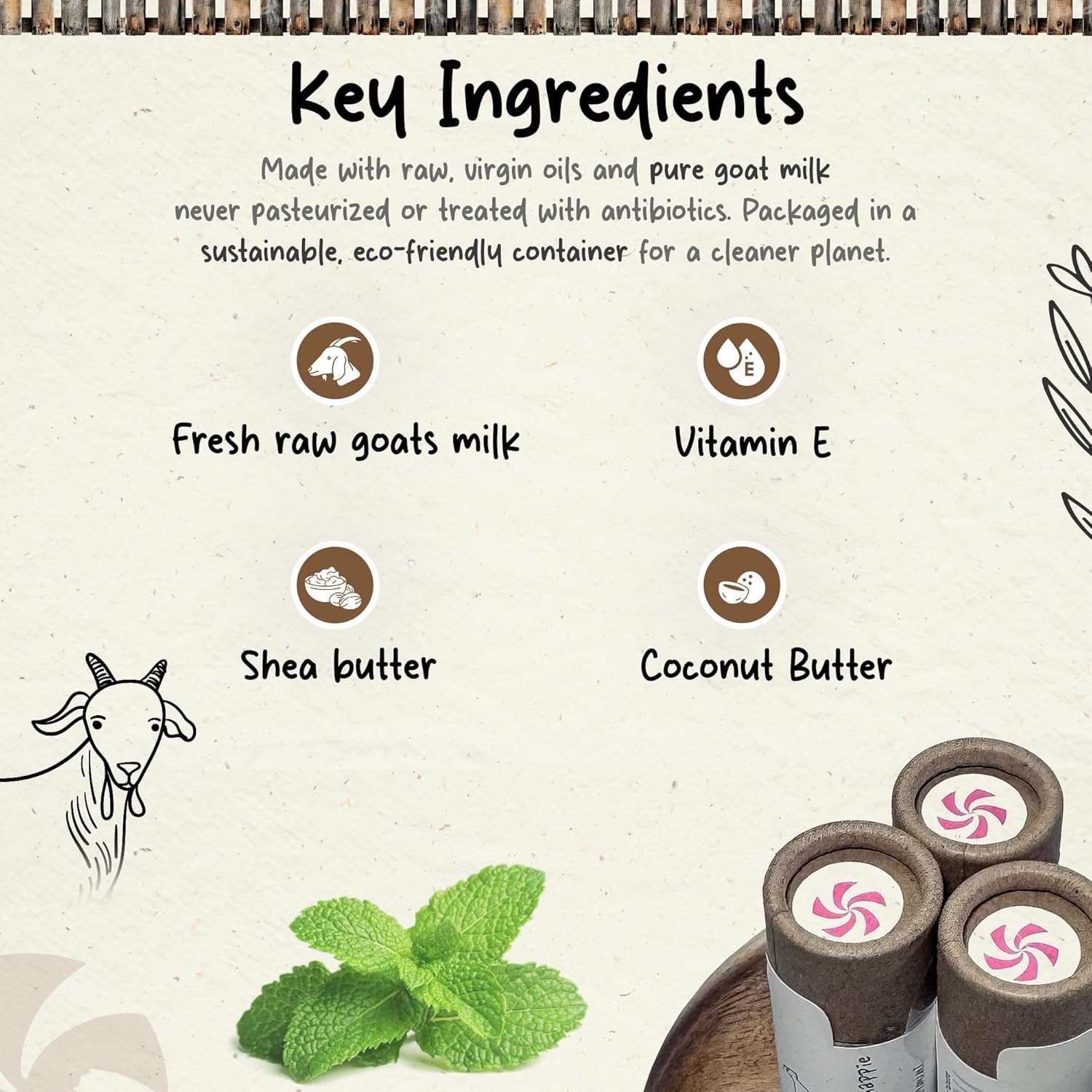 Natural Lip Balm with Goat Milk – Hydrating Chap Sticks | Lip Care Product for All Skin Types | Chapstick Total Hydration | Lips Moisturizer for Dry Lips | Peppermint (Pack of 3)