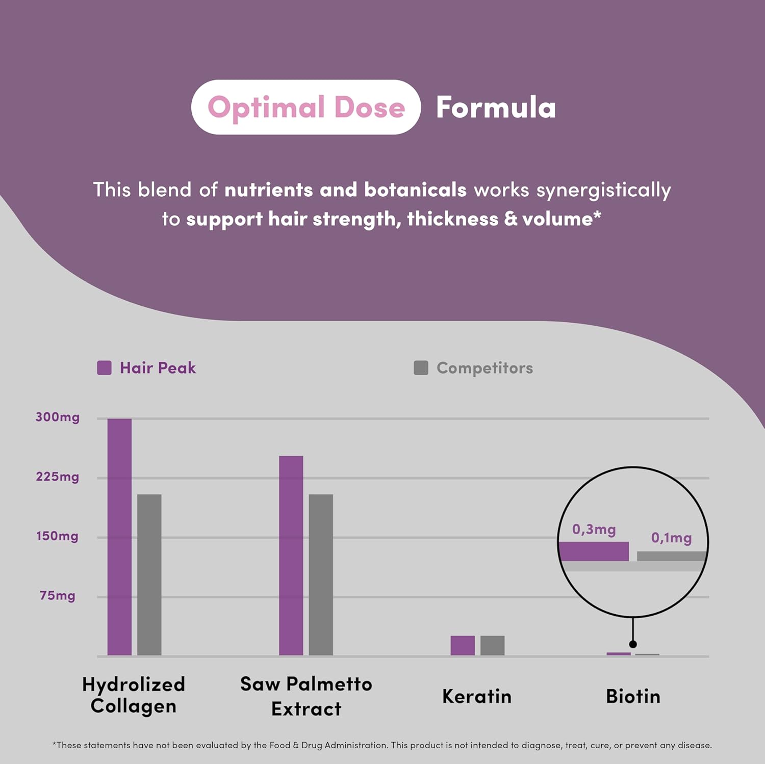 - SUPPORTS HAIR STRUCTURE: Hair Peak combine key nutrients including hydrolyzed collagen, biotin, and keratin to help maintain healthy hair structure and support natural hair appearance from within.*
