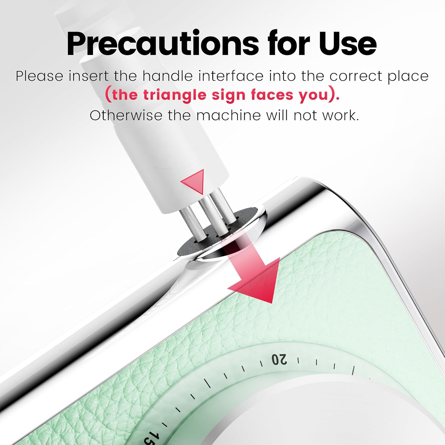 - 【Protect the Handpiece, Long Service Life】Unique interface design, please insert the handle interface into the correct place (the triangle sign faces you). Otherwise the machine will not work.