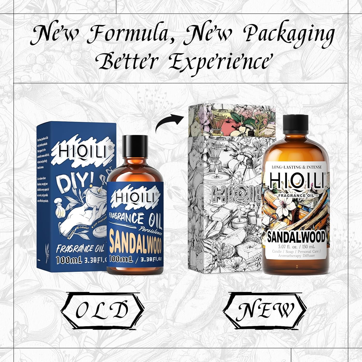 HIQILI Sandalwood Fragrance Oil for Home Diffuser, Luxury Hotel Scent, Perfect for DIY Candle & Soap Making, Add to Body Lotion - 5.07 Fl Oz