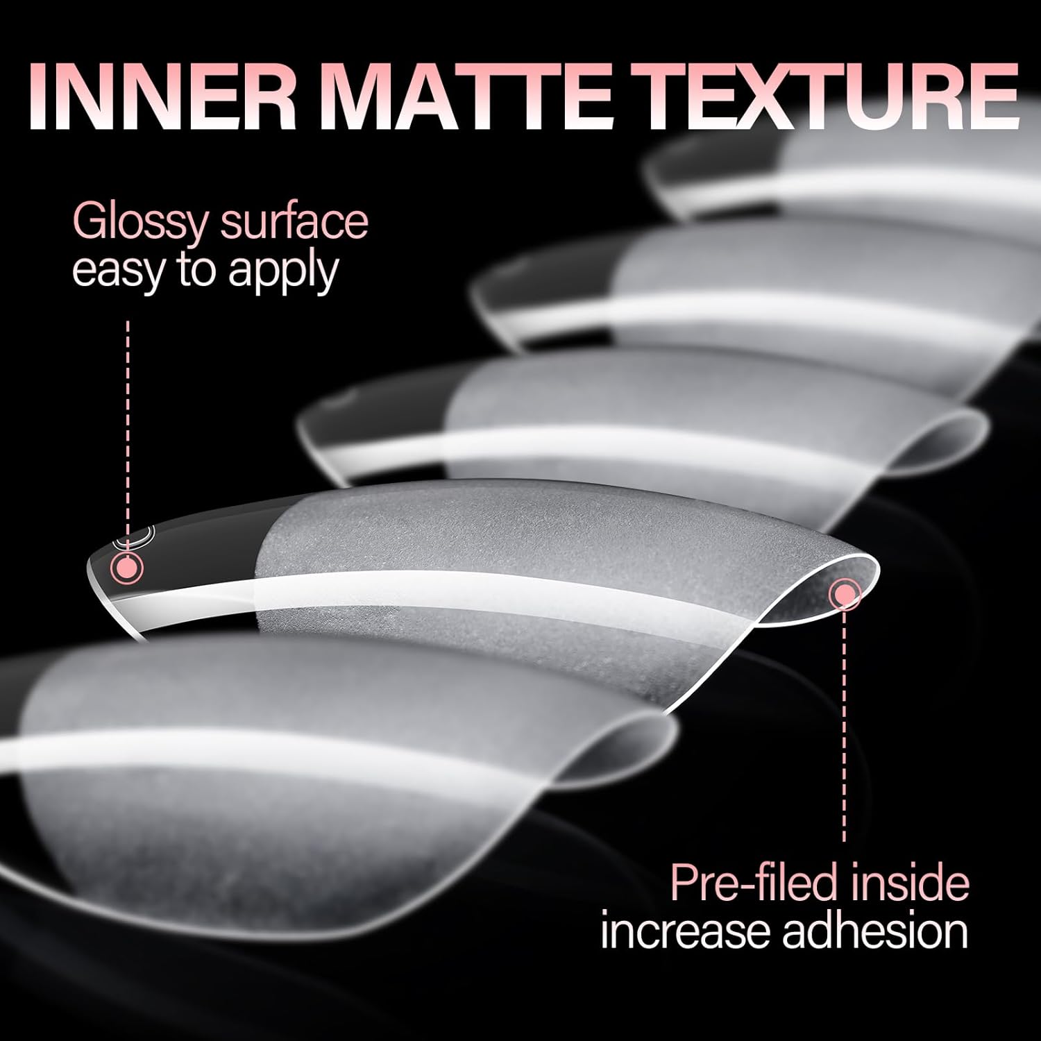 - 【Fits Nail Curvature, Natural & Comfortable, No Scratching】: Designed based on the natural curvature of nails, with edges finely polished to 0.1mm rounded corners. The fake nail fits the natural curve of your nails without air bubbles, ensuring no foreign body sensation and flexible finger movement. The smooth, burr-free surface prevents scratches on clothes or skin, making daily wear safer.