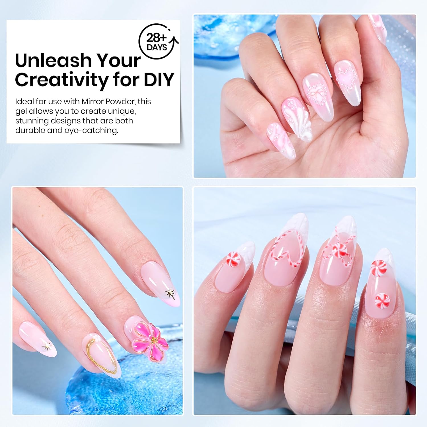 - Easy Application & Control: The white 3D sculpting rhinestone glue applies evenly, has easy control and adjustment before curing powder, holds its shape without sagging, the color is transparent, and can be rubbed with magic mirror powder to achieve dazzling metallic effects. It allows for precise application, ensuring a seamless and natural-looking manicure.