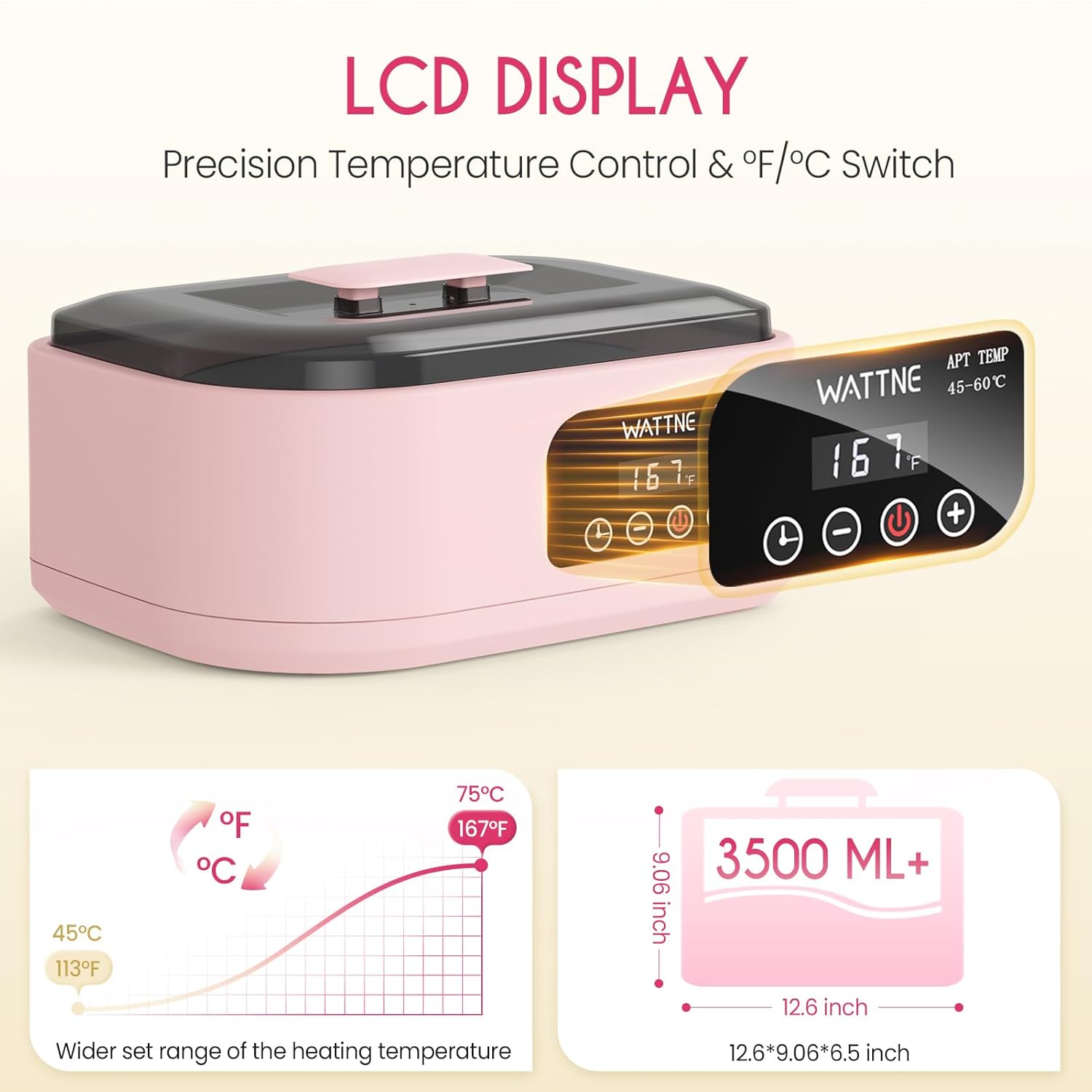 Wattne Paraffin Wax Machine for Hands & Feet – Paraffin Wax Warmer Moisturizing Kit with Auto-Timer & Precision Temperature Control, Paraffin Wax Bath for Arthritis, Dry Skin Care, Home Spa-Pink