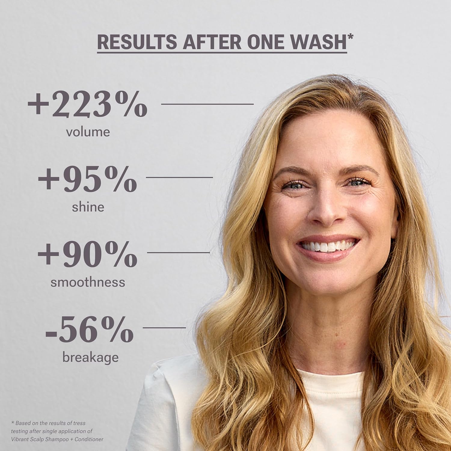 - Vibrant Scalp Conditioner – Infused with Elastaplex Technology, this conditioner increases hair volume by 233% and smoothness by 90% after one use, while reducing breakage by 56%, leaving hair visibly fuller and healthier.*