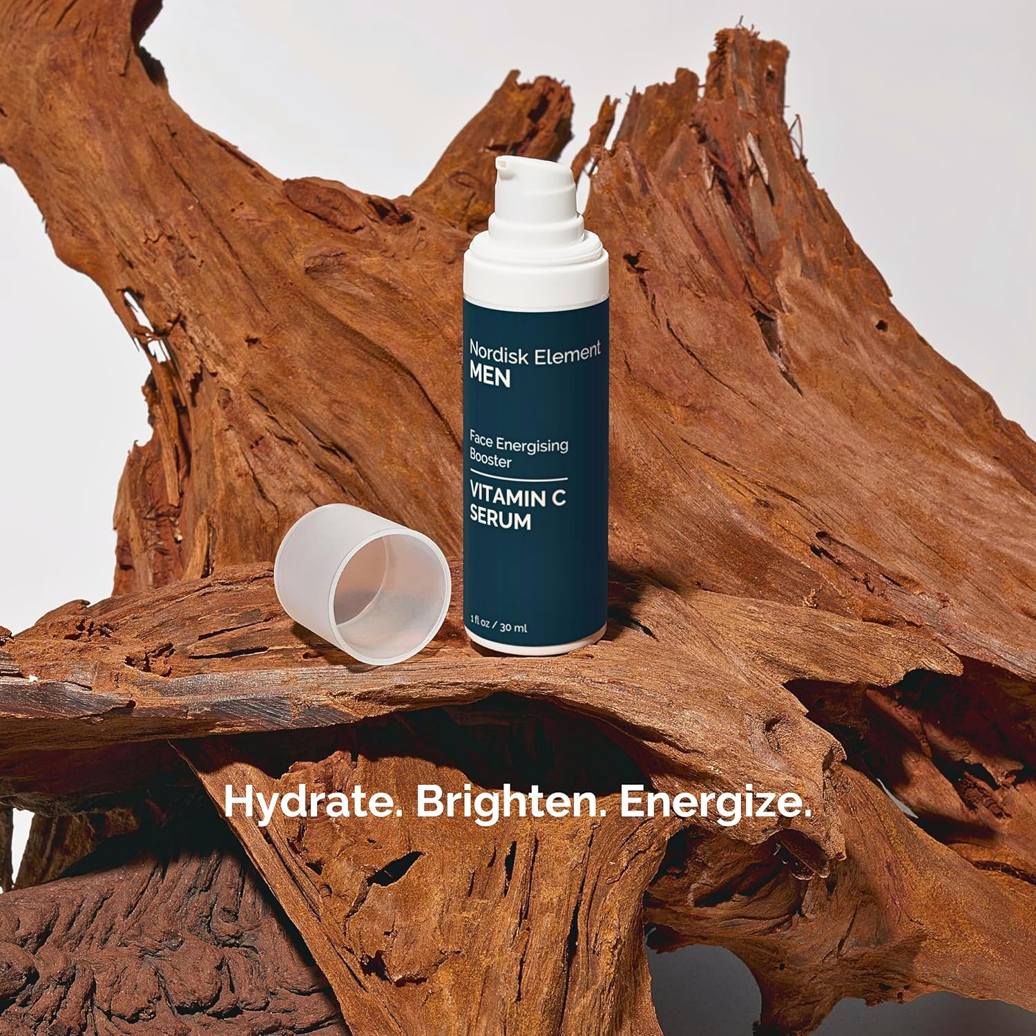 Nordisk Element Vitamin C Face Serum for Men, Anti-aging formula, Improve Appearance of Dark Spots, Tone, Fine Lines & Wrinkles, with Natural Vitamin C & Hyaluronic Acid, 1 Fl Oz