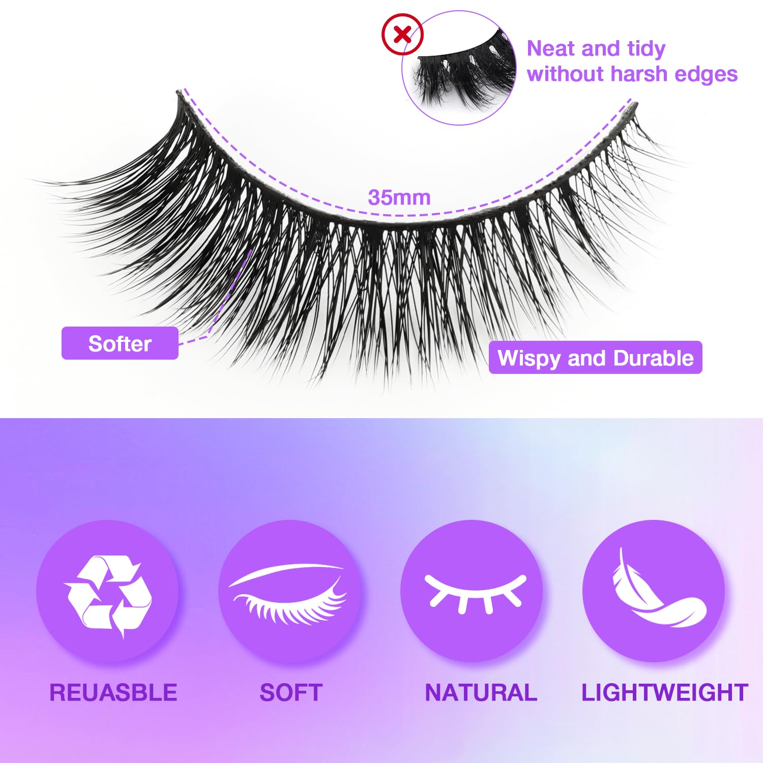 - All-Day Waterproof Warrior: Sweat-proof, rain-ready fake eyelashes that stay flawless for 12+ hours! Natural-looking strip lashes with flexible band won’t lift corners. Perfect for weddings, workouts, or humid days – reusable wispy magic!